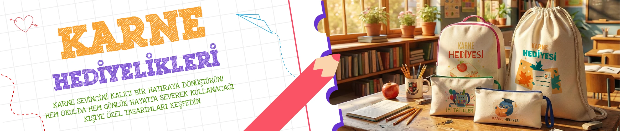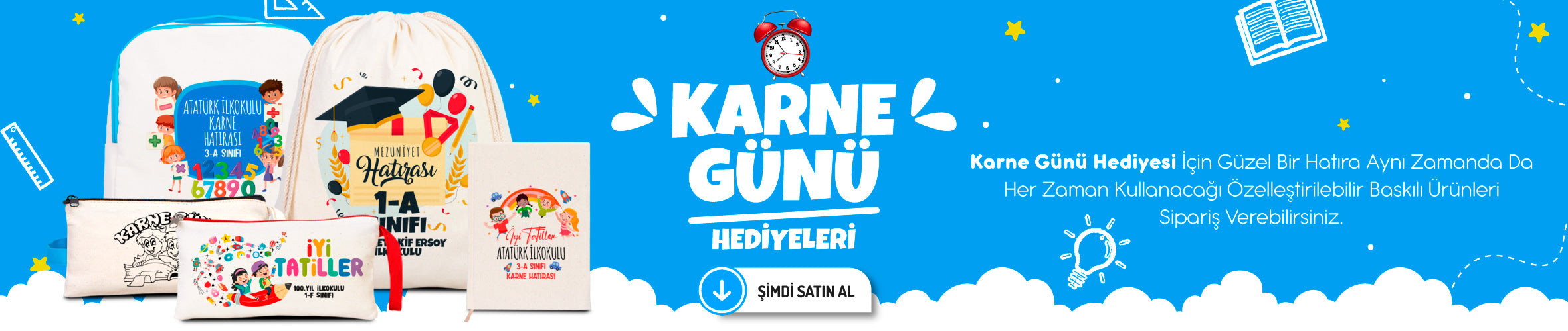 Karne günü, çocuklarımızın yıl boyunca gösterdikleri çaba ve başarıları kutlama zamanıdır. Okul öncesi eğitimden başlayarak, 4. sınıfa kadar, hatta lise yıllarına kadar devam eden bu güzel gelenek, sevdiklerimizi ödüllendirme ve mutlu etme fırsatı sunar. İşte Çanta olarak, karne gününü unutulmaz kılmak için özel okul ve sınıf isim baskılı hediyelikler sunuyoruz.