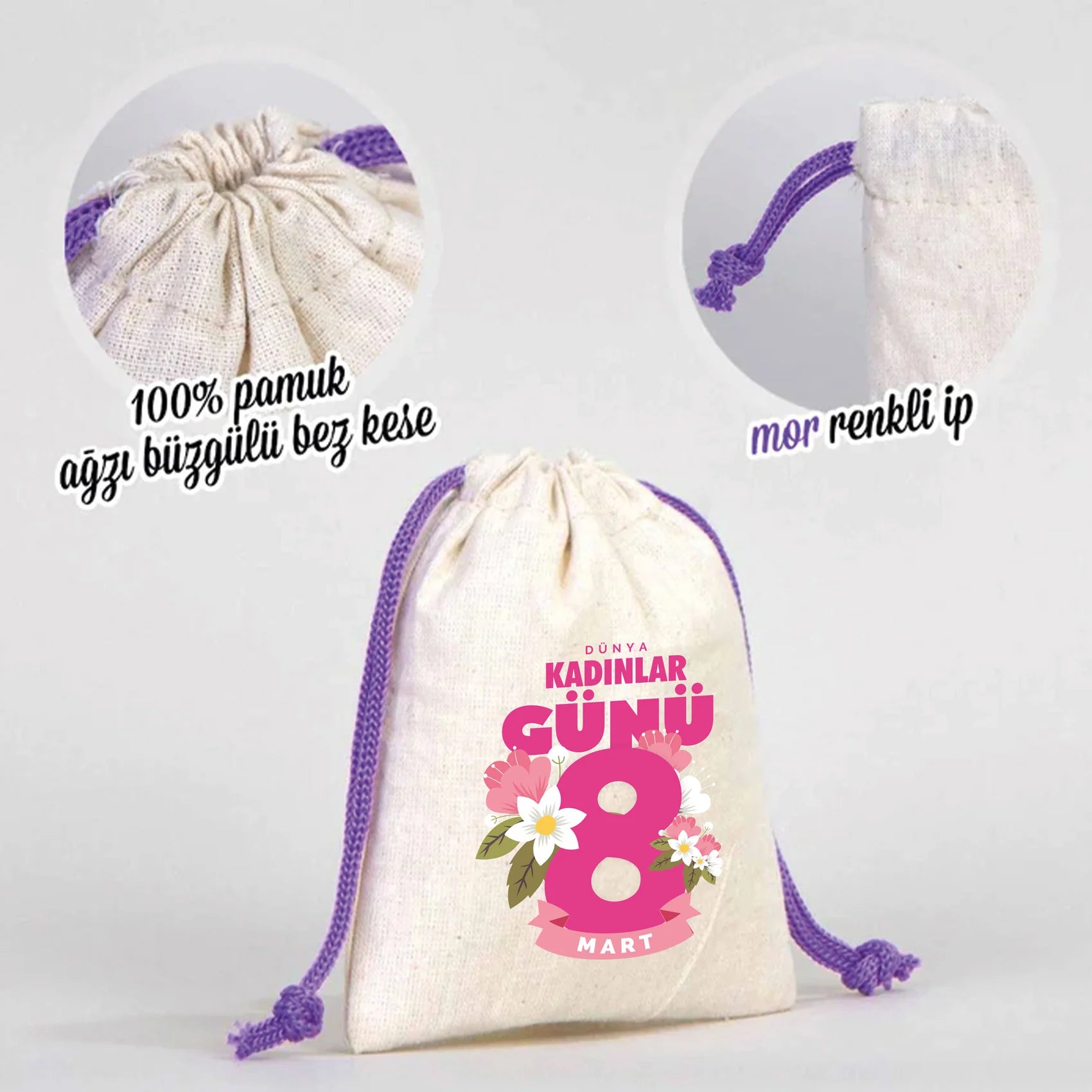 • 10×13 cm ölçülerinde, el işçiliğiyle üretilmiş ham bez kese