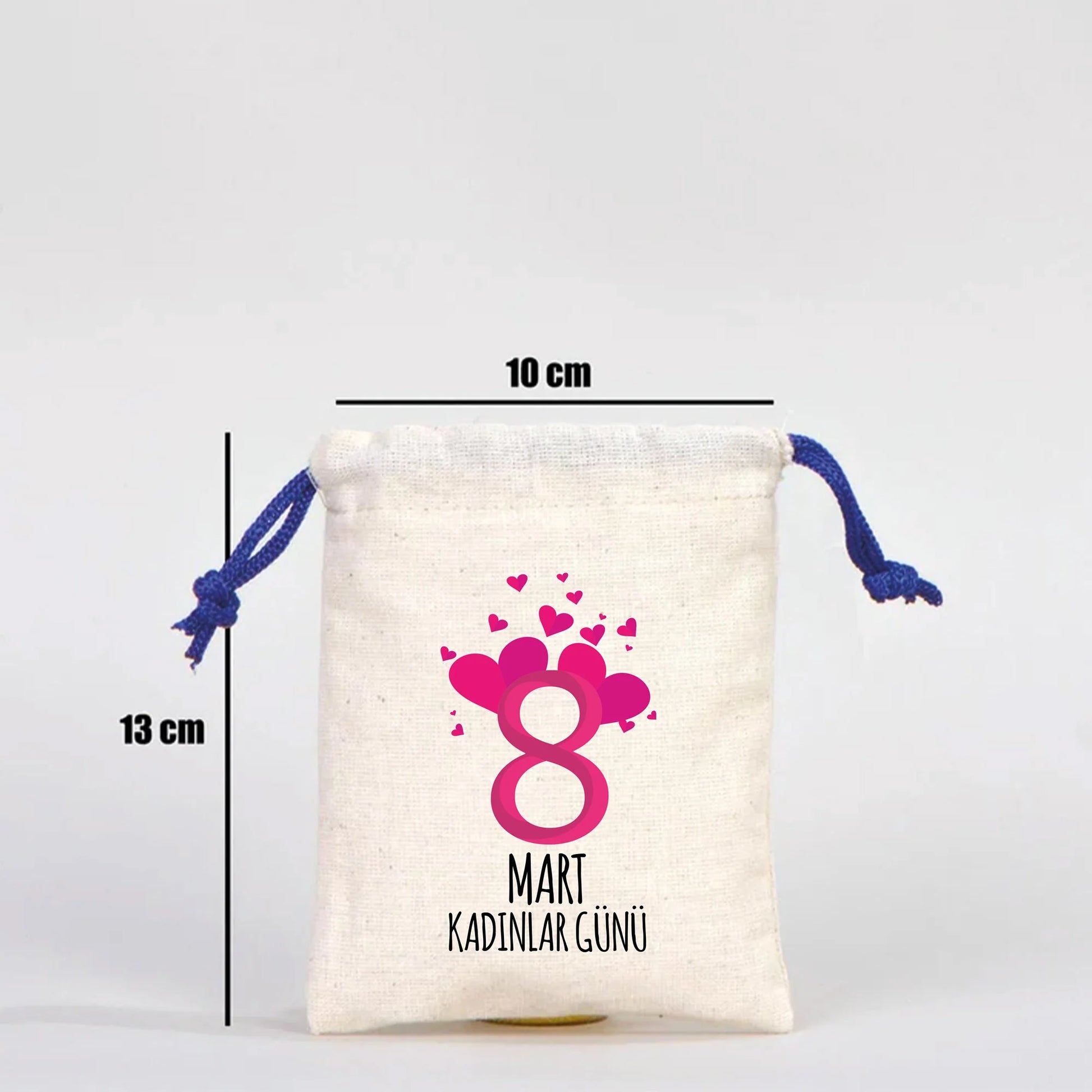 10x13 Saks Mavi İpli Bez Kese – Kadınlar Günü Hediyesi