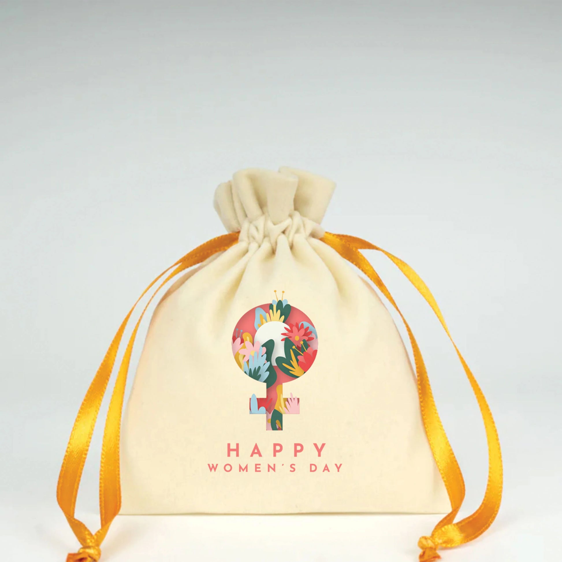 10x13 cm Turuncu Renk İp Kadife Gül Kese - Kadınlar Günü Hediyesi