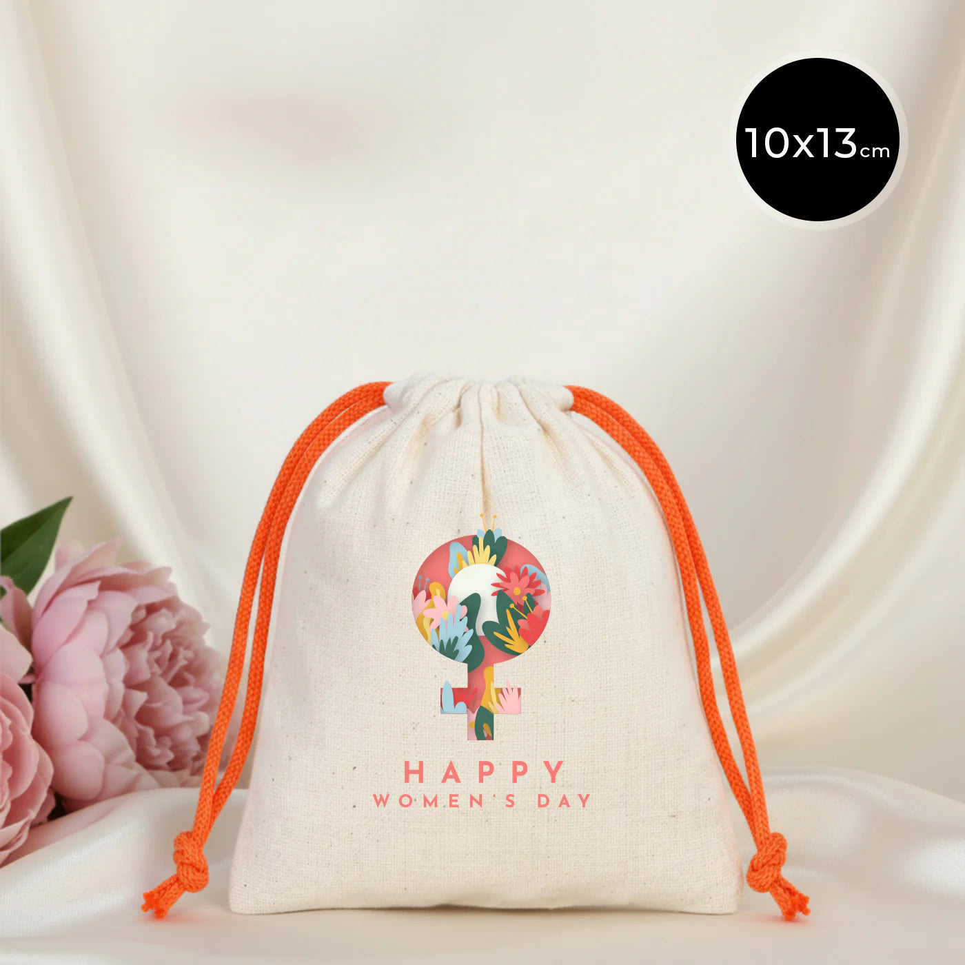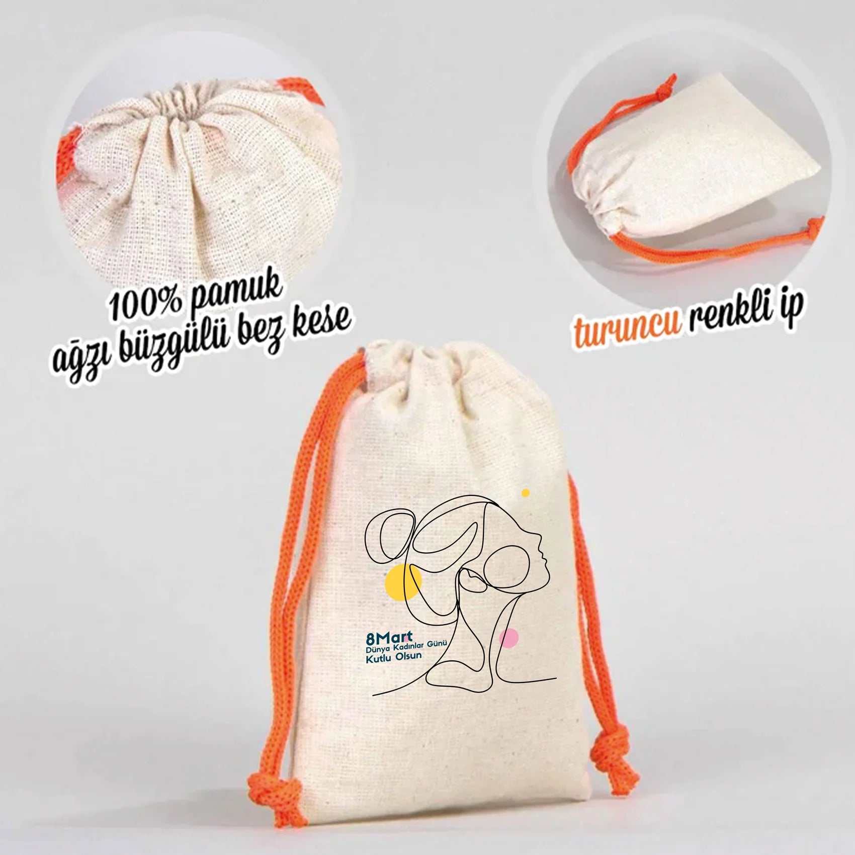 10x13 Turuncu İpli Bez Kese – Kadınlar Günü Hediyesi