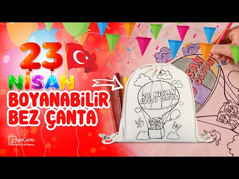 23 Nisan Temalı Büzgülü Bez Çanta - 35x40 cm