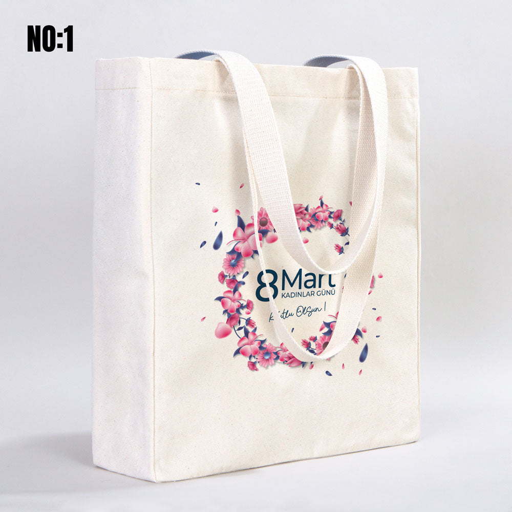 8 Mart Kadınlar Günü Temalı Tam Körüklü Kanvas Çanta - 35x40x10 cm (Özelleştirilebilir)
