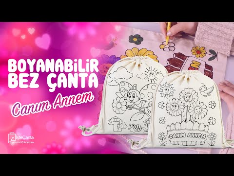 Anneler Günü Boyanabilir Büzgülü Bez Çanta