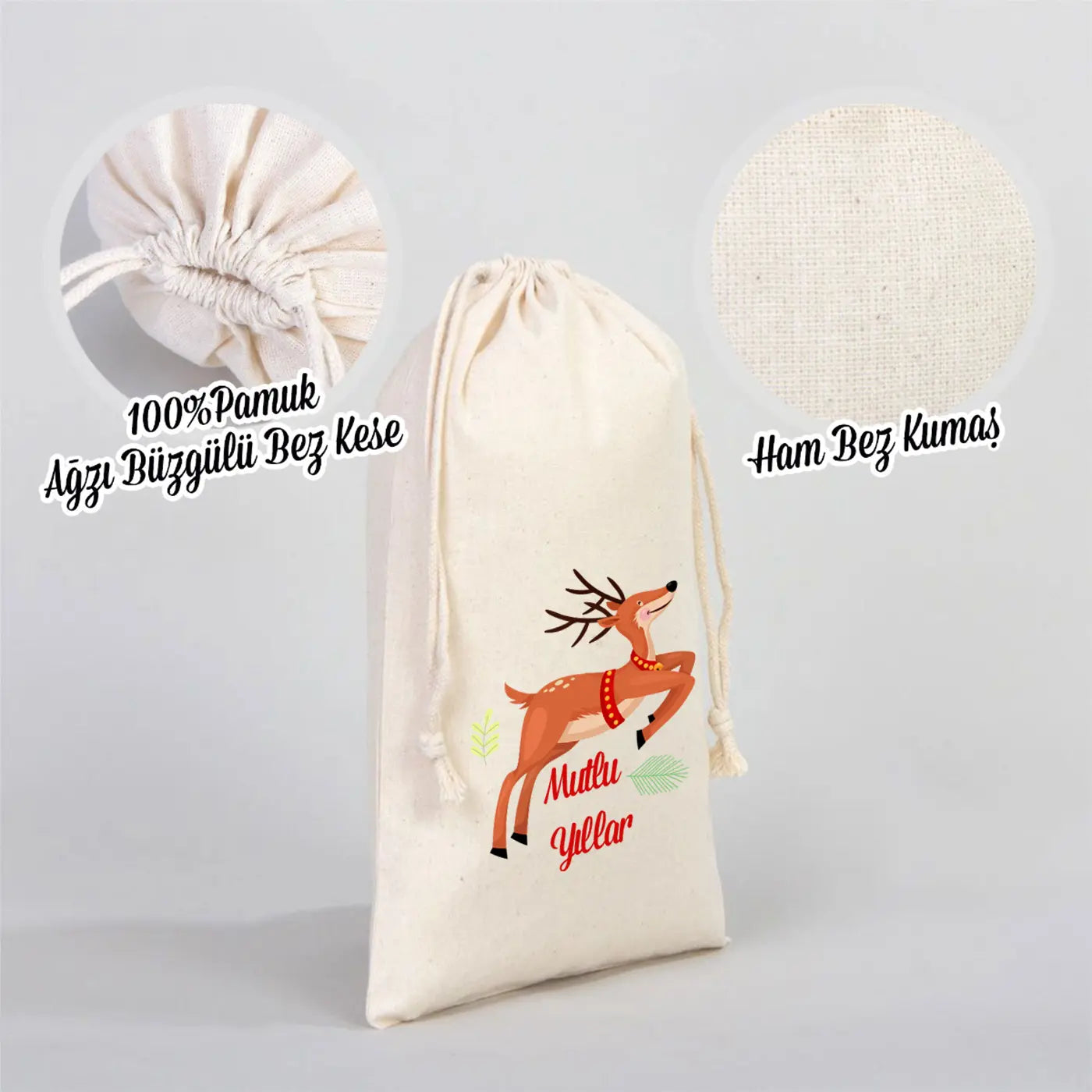 Yılbaşı Özel Desenli Bez Bez Kese 20 x 30 cm (Özelleştirebilir)