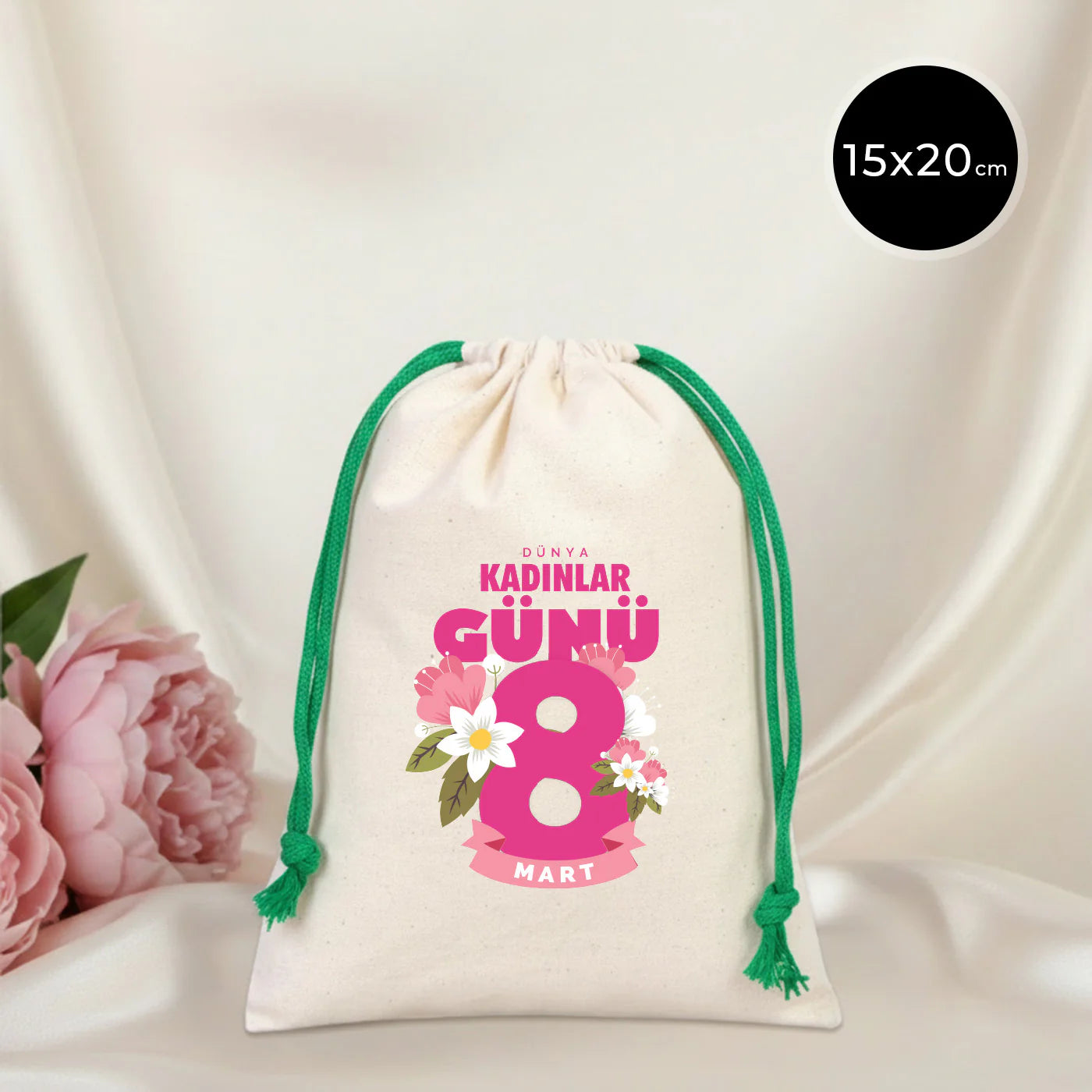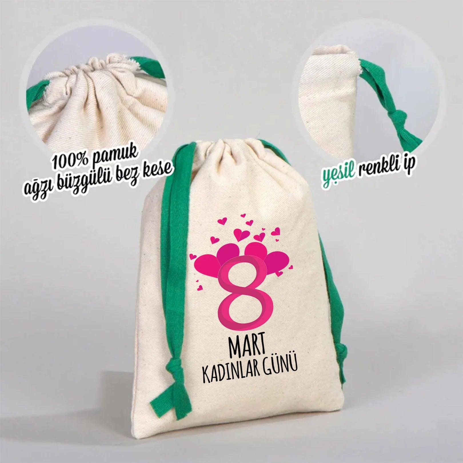 15x20 cm Bez Kese Yeşil İpli - Kadınlar Günü Hediyesi