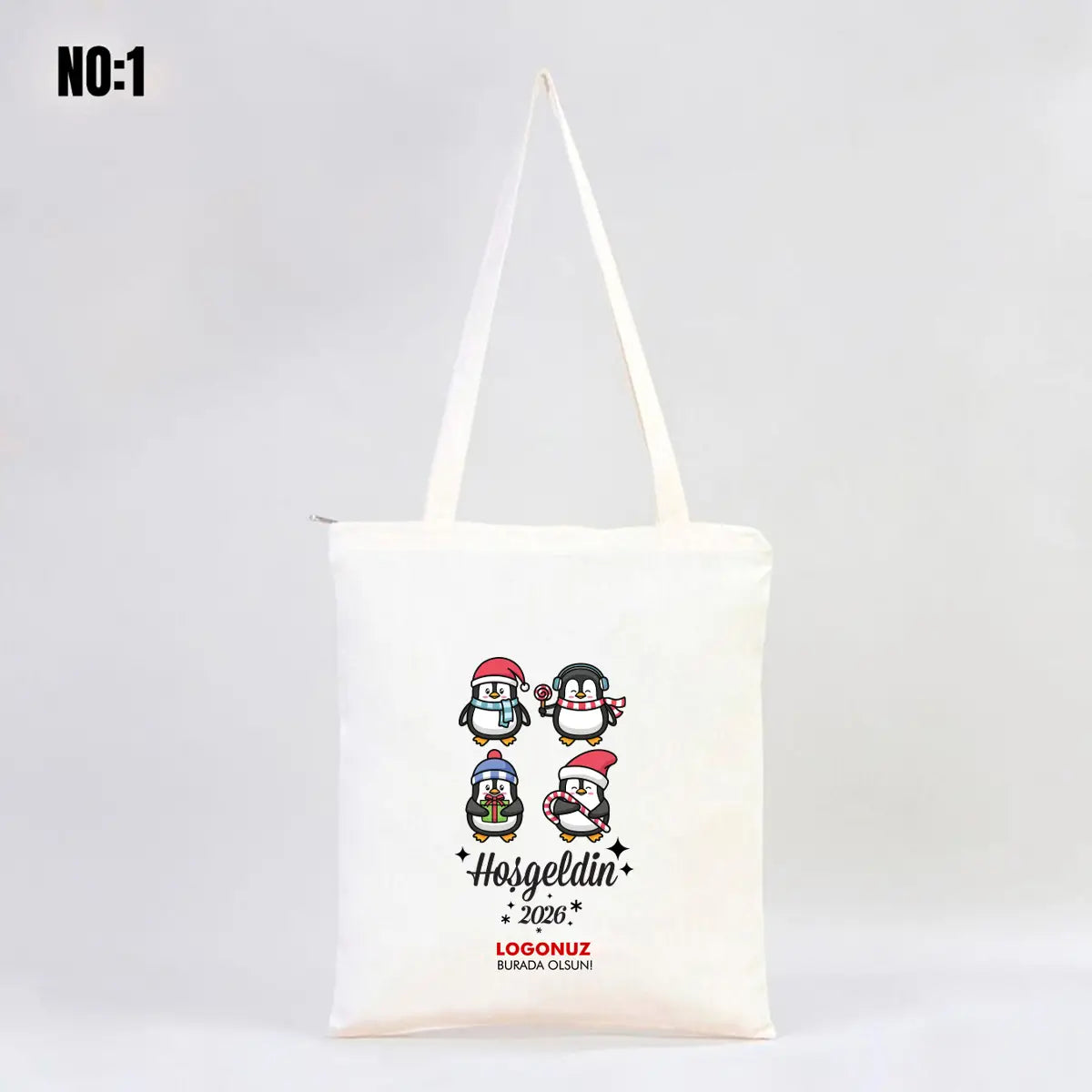 Fermuarlı Ham Bez Çanta 35x40 cm Yılbaşı Bez Çanta Baskılı (Özelleştirilebilir)