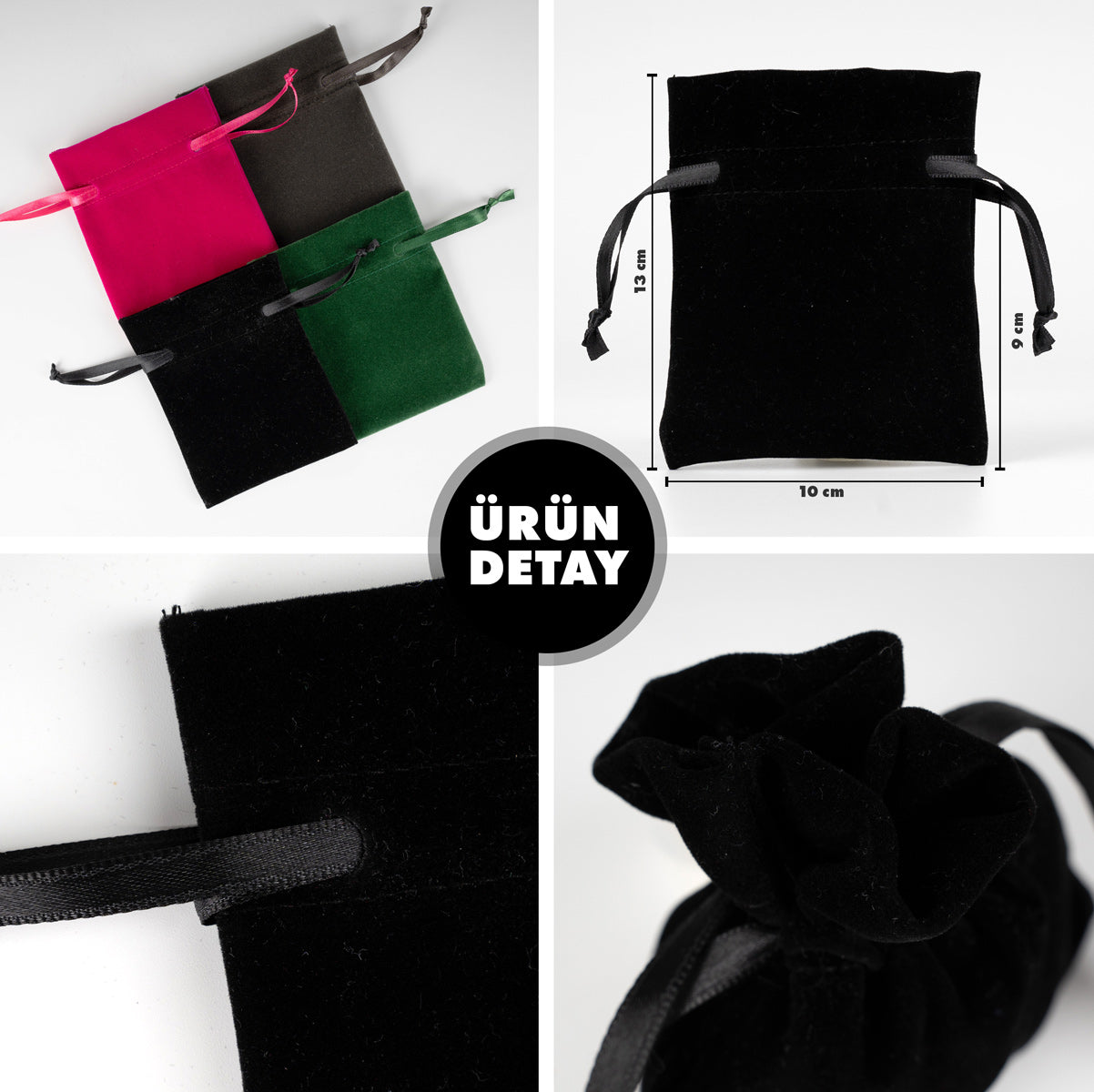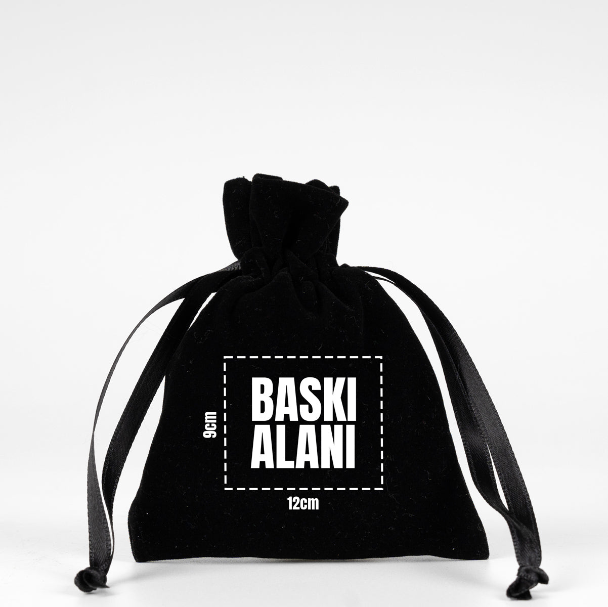 Kadife Gül Kese 10x13 cm - Siyah (Özelleştirilebilir)