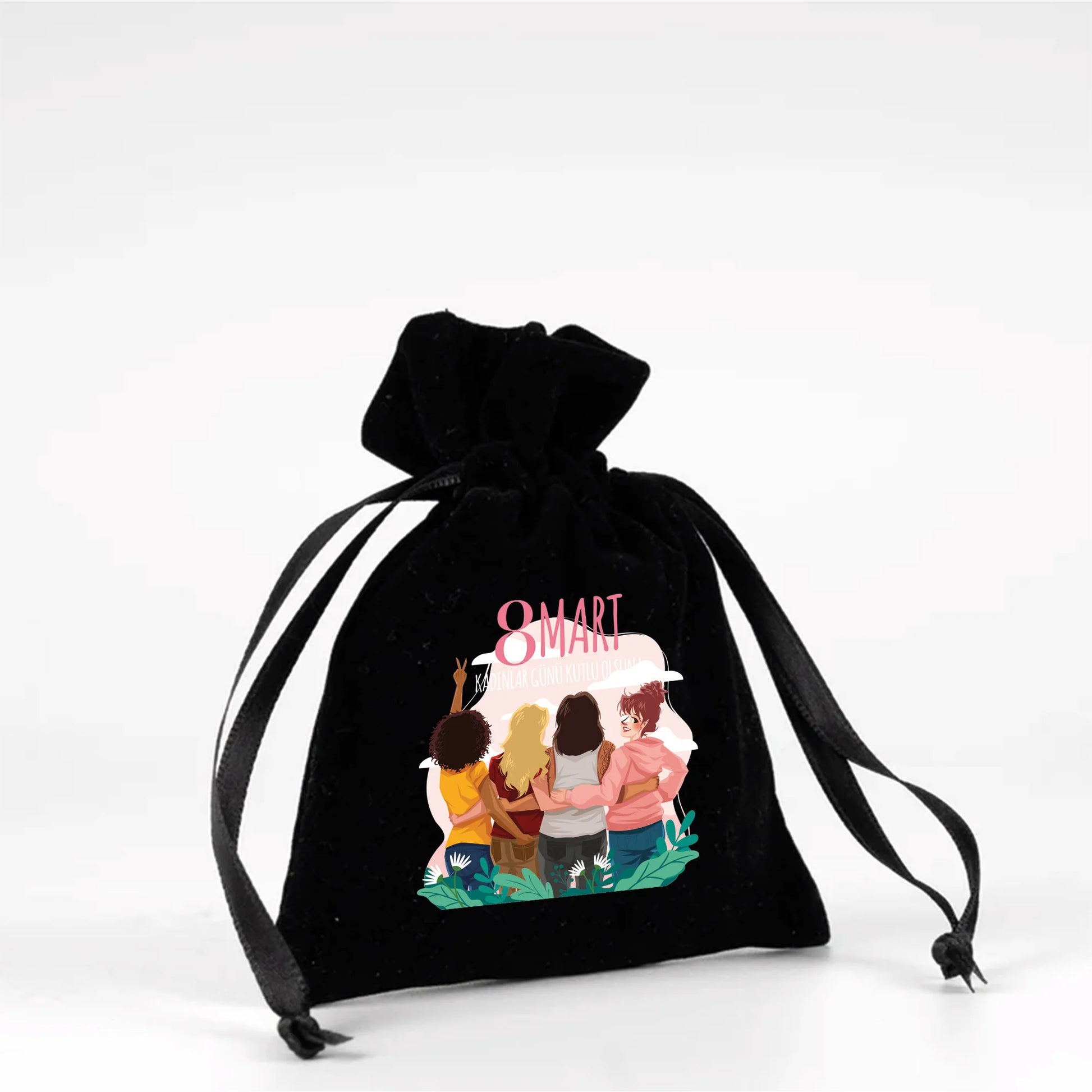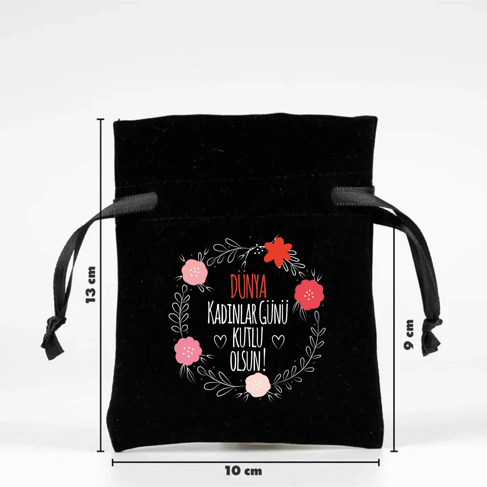 10x13 cm Siyah Kadife Gül Kese - Kadınlar Günü Hediyesi