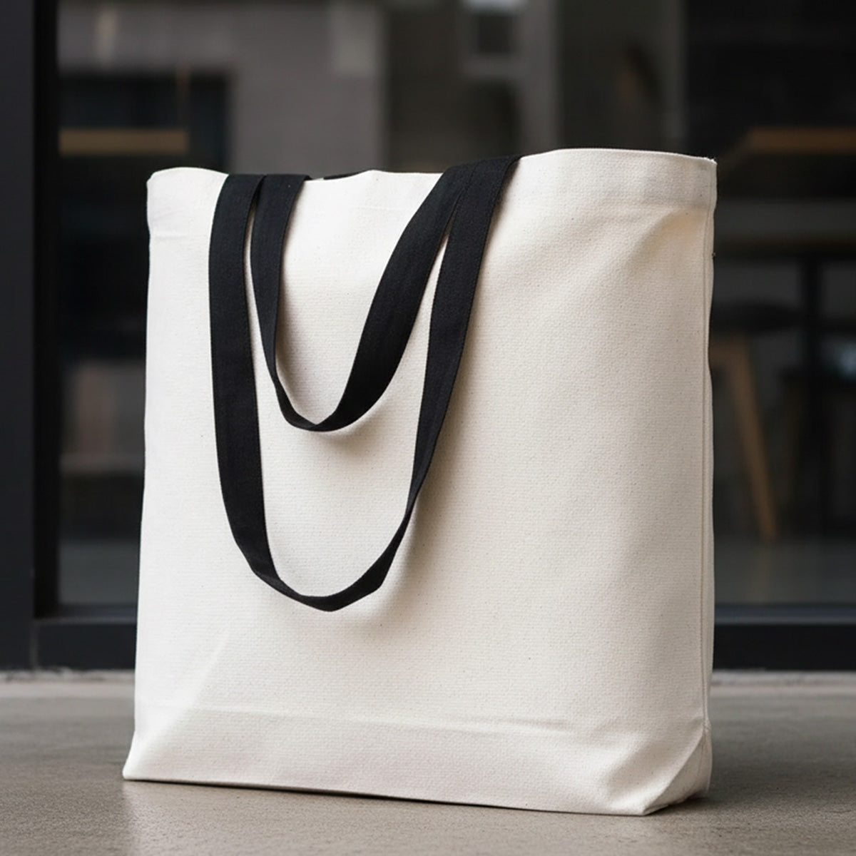 Kanvas Plaj Çantası Siyah Kulp 48x41x10 cm