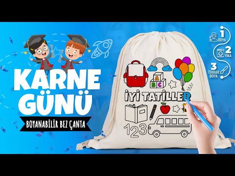 • Karne günü temalı çizimi baskılı boyamaya uygun bez çanta