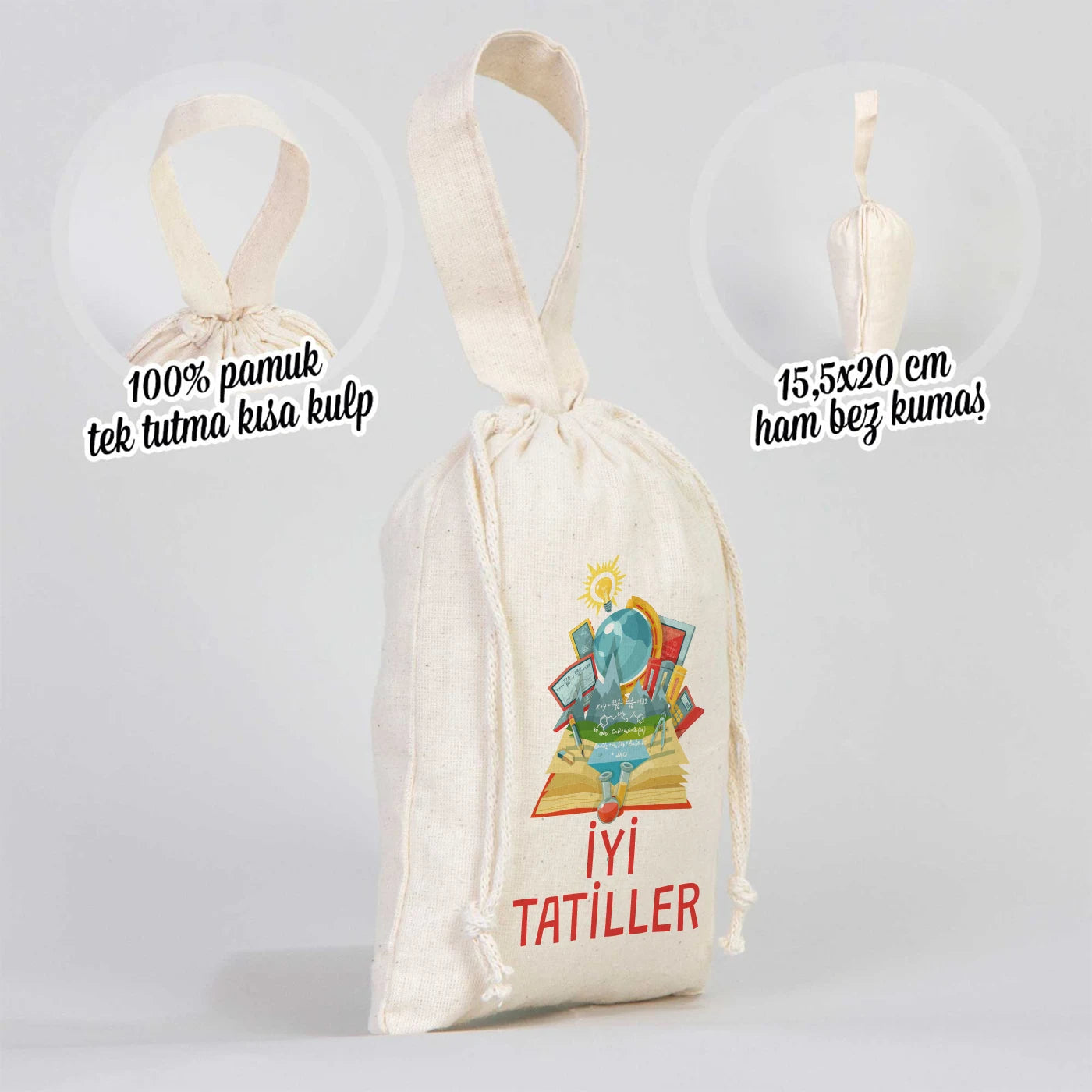 • Karne günü ve yıl sonu etkinliklerinde öğrencilere verilebilecek anlamlı bir hatıra olarak kullanılabilir. Tatil temalı küçük hediyeler, kırtasiye ürünleri veya kişisel eşyalar için pratik bir saklama kesesidir.