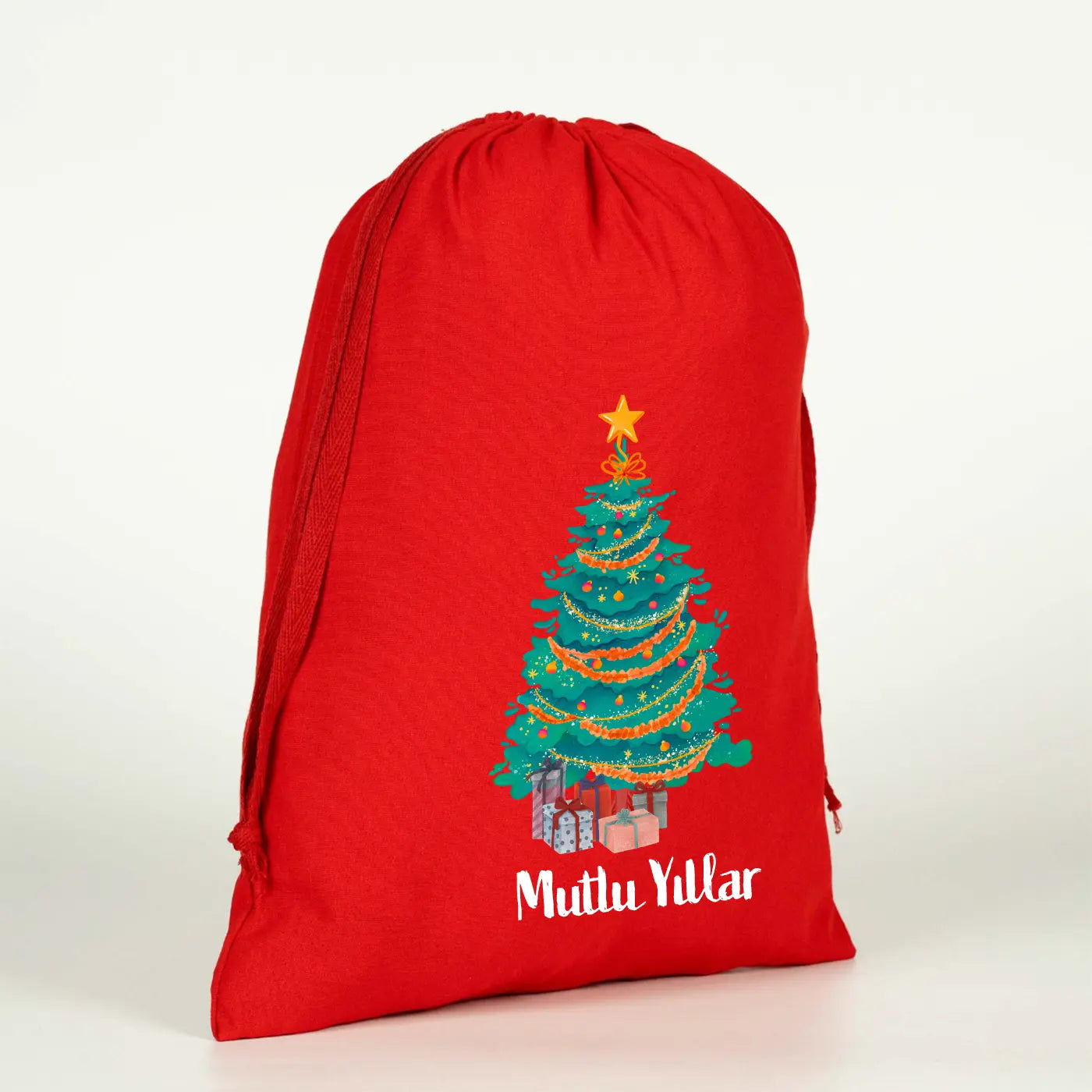 Kırmızı Yılbaşı Desenli Kese 35x40 cm (Özelleştirilebilir)