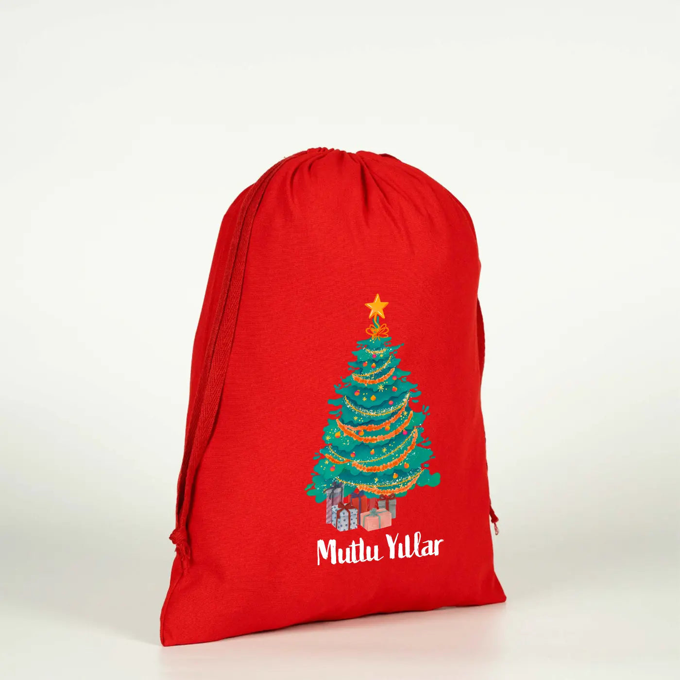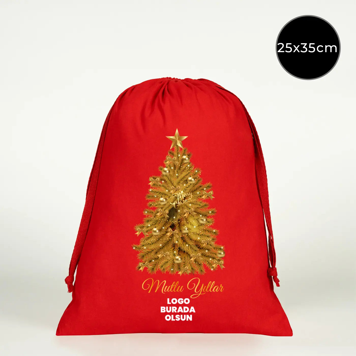 Kırmızı Yılbaşı Temalı Kese 25x35 cm (Özelleştirilebilir)