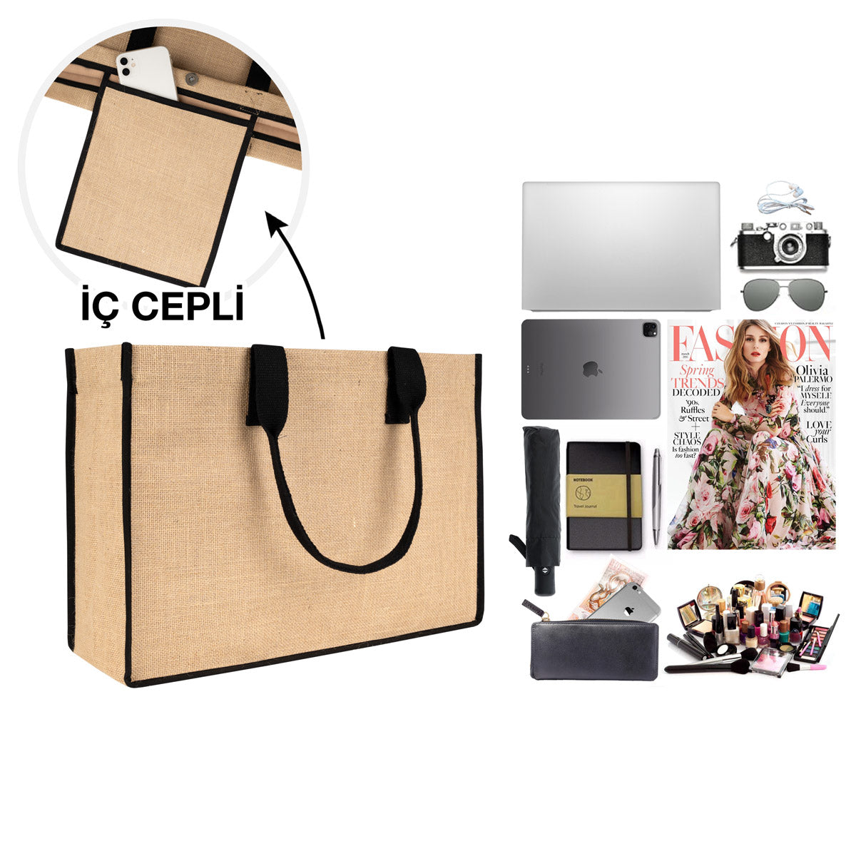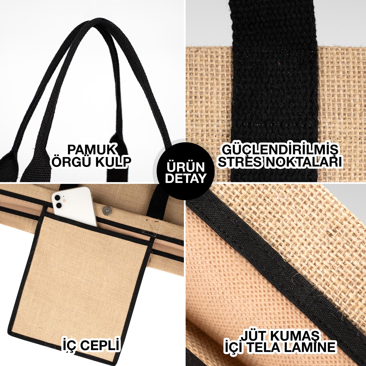 • Jüt kumaştan imal edilmiştir