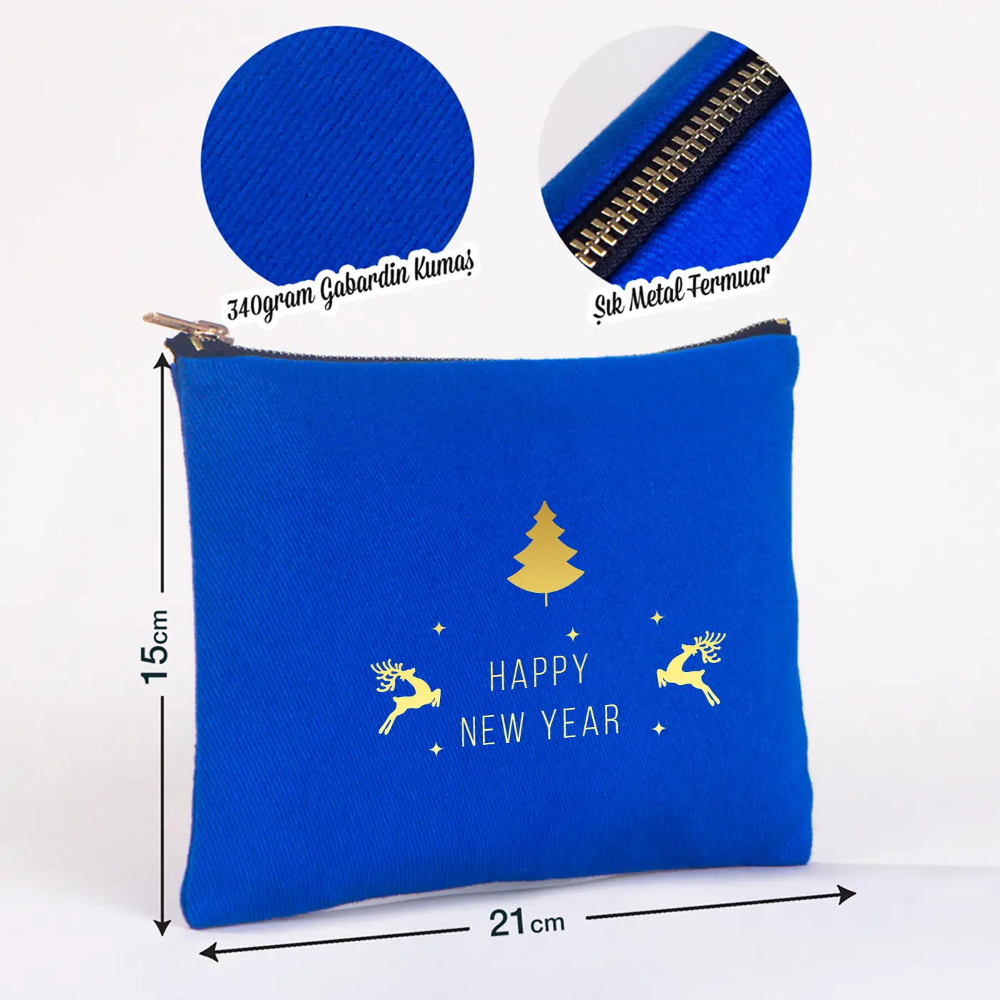 Yılbaşı Star Clutch 21x15 Saks Mavi - Metal Fermuar (Özelleştirilebilir)