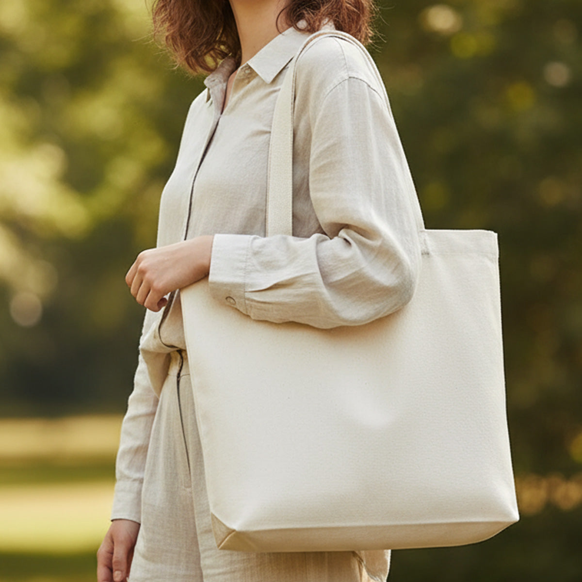 Modern Kanvas Çanta - Dıştan Örgü Kulp 45x35x8 cm