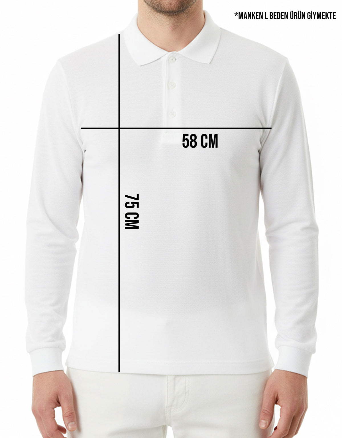 Polo Yaka Uzun Kol Beyaz Tişört