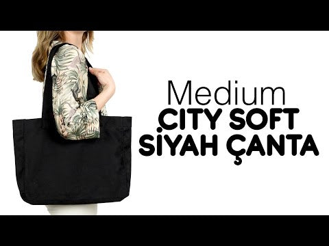 Medium City Soft Kumaş Çanta - Siyah - 35x30x10 cm