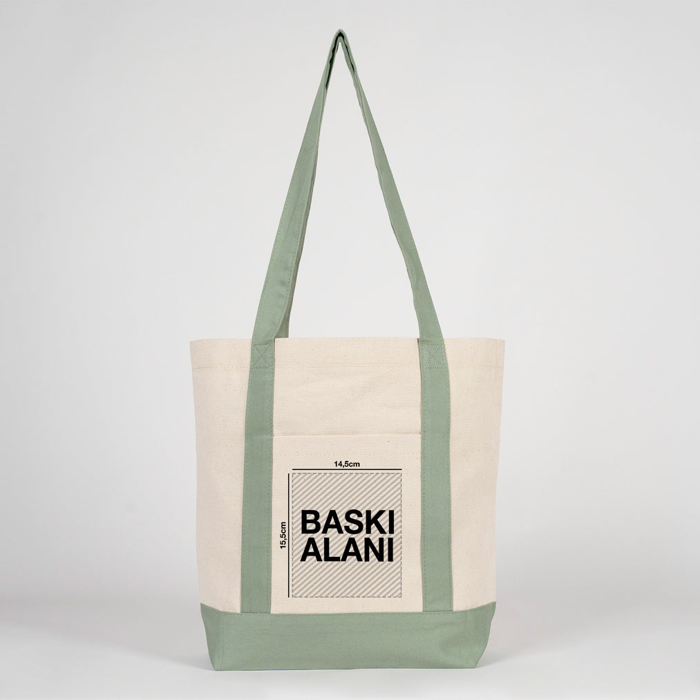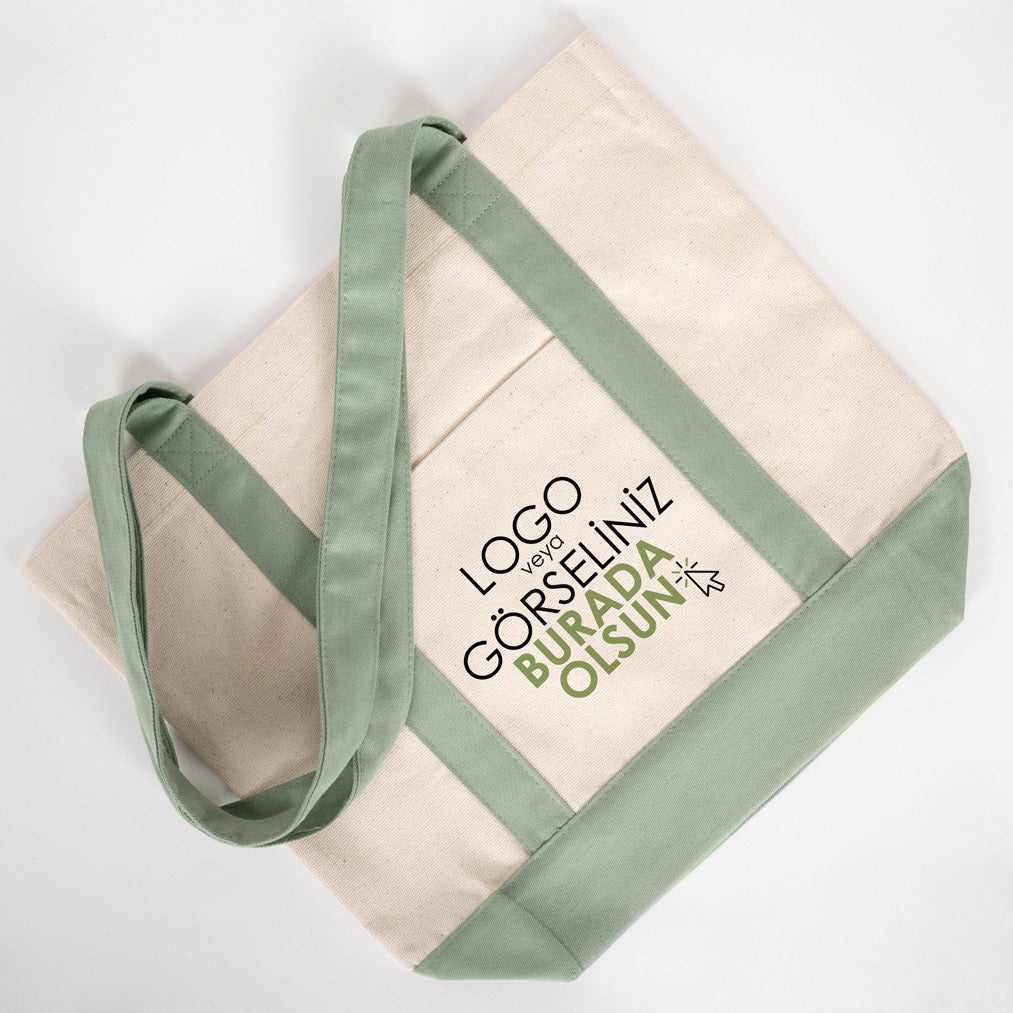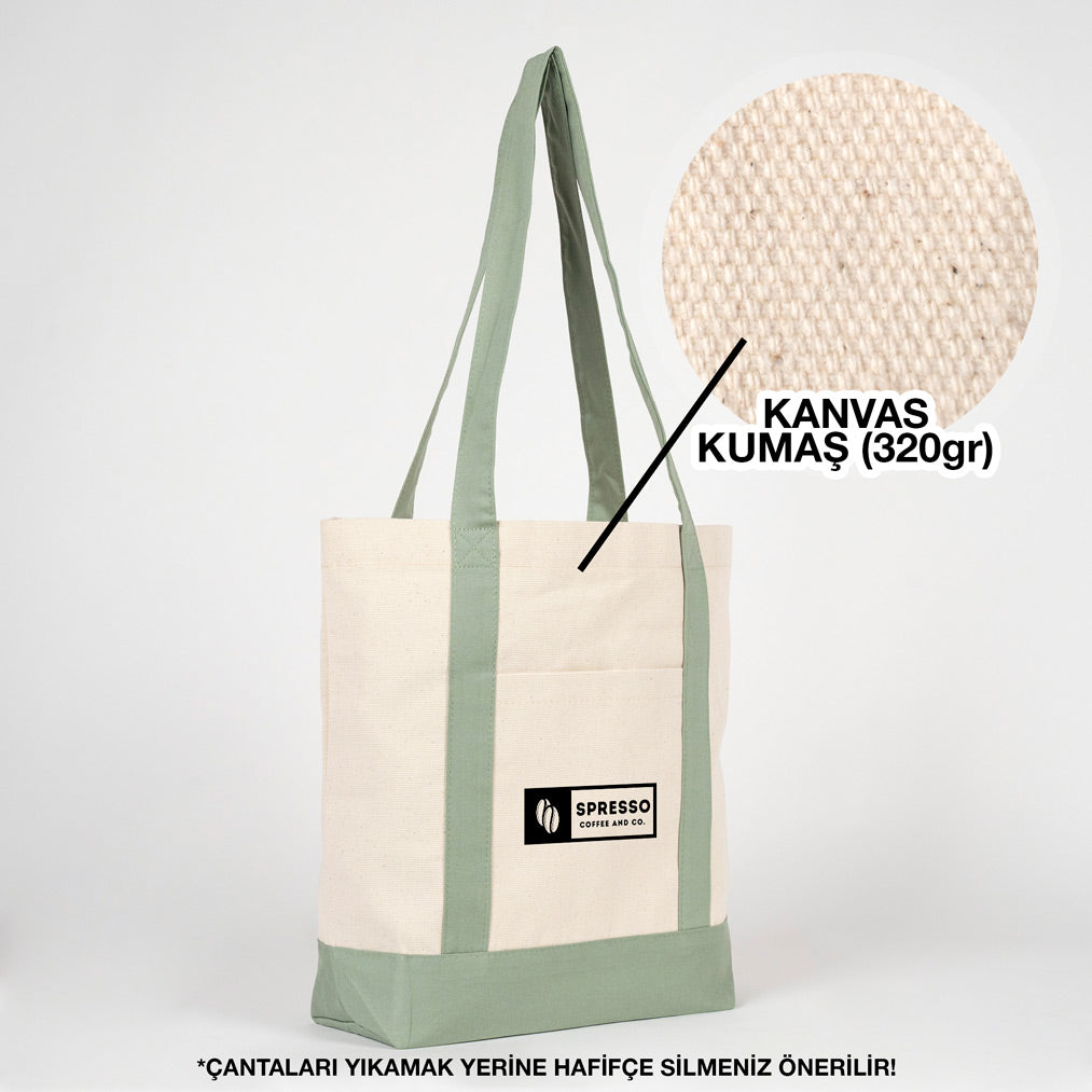 Trend Kanvas Çanta 40x35x12cm - Mint Yeşili Renkli Kulp (Özelleştirilebilir)
