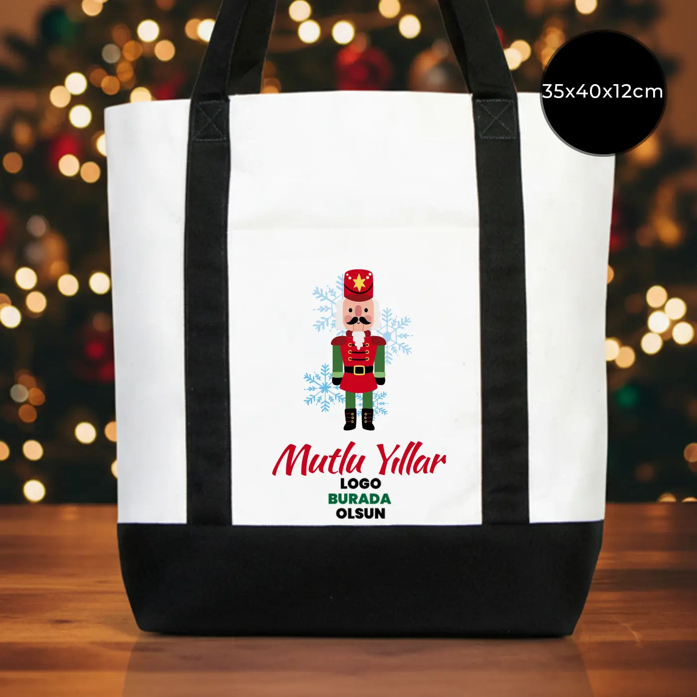 Yeni Yıl Özel Trend Kanvas Çanta 40x35x12cm - Siyah Renkli Kulp (Özelleştirilebilir)