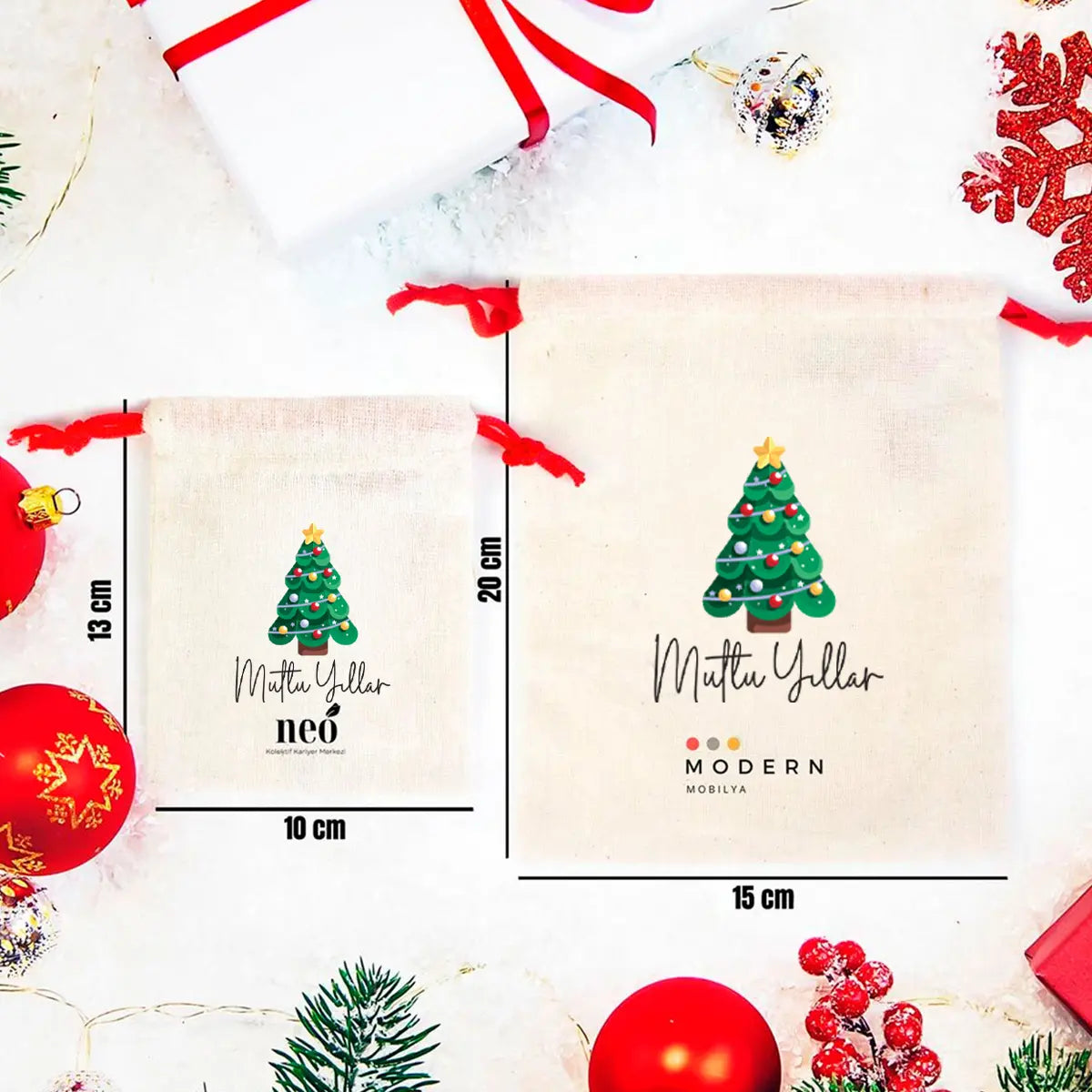 •  Yılbaşı bez kese boyutları 10x13cm - 15,5x20cm (ürünler el dikimi olduğundan +/- 1cm ölçülerinde küçük farklılıklar olabilmektedir)
