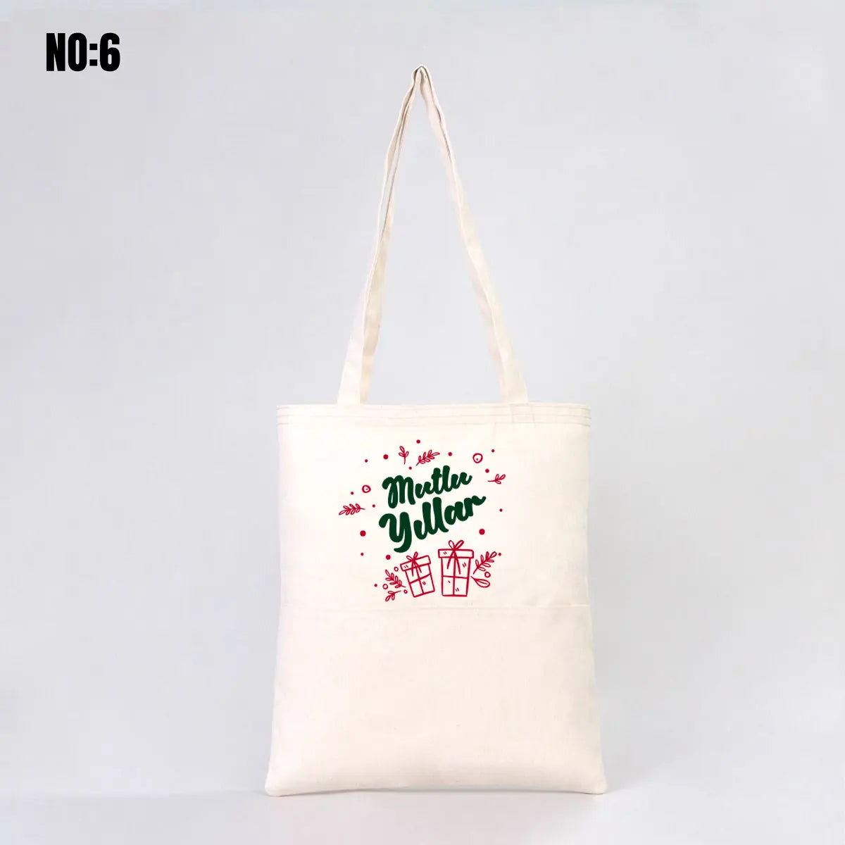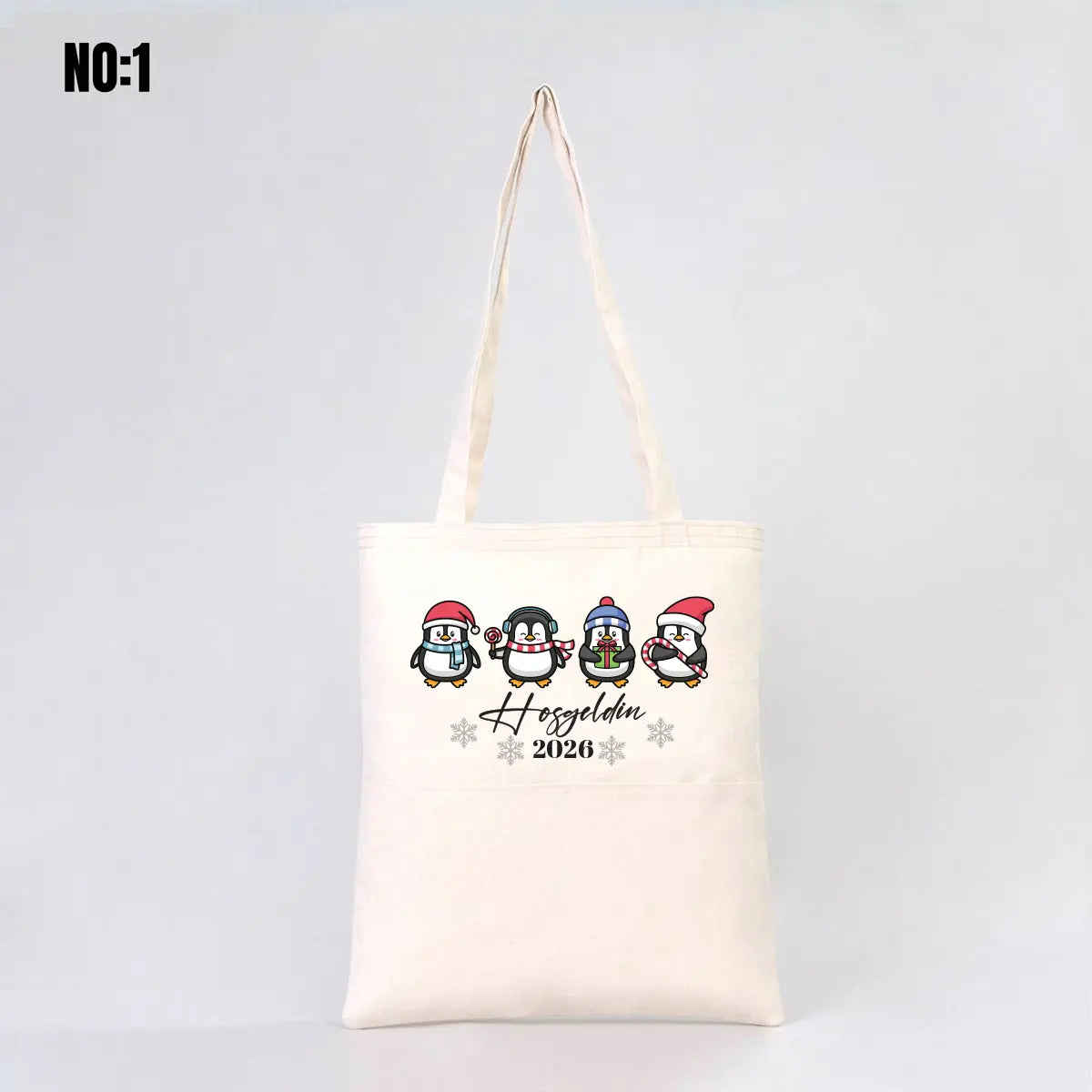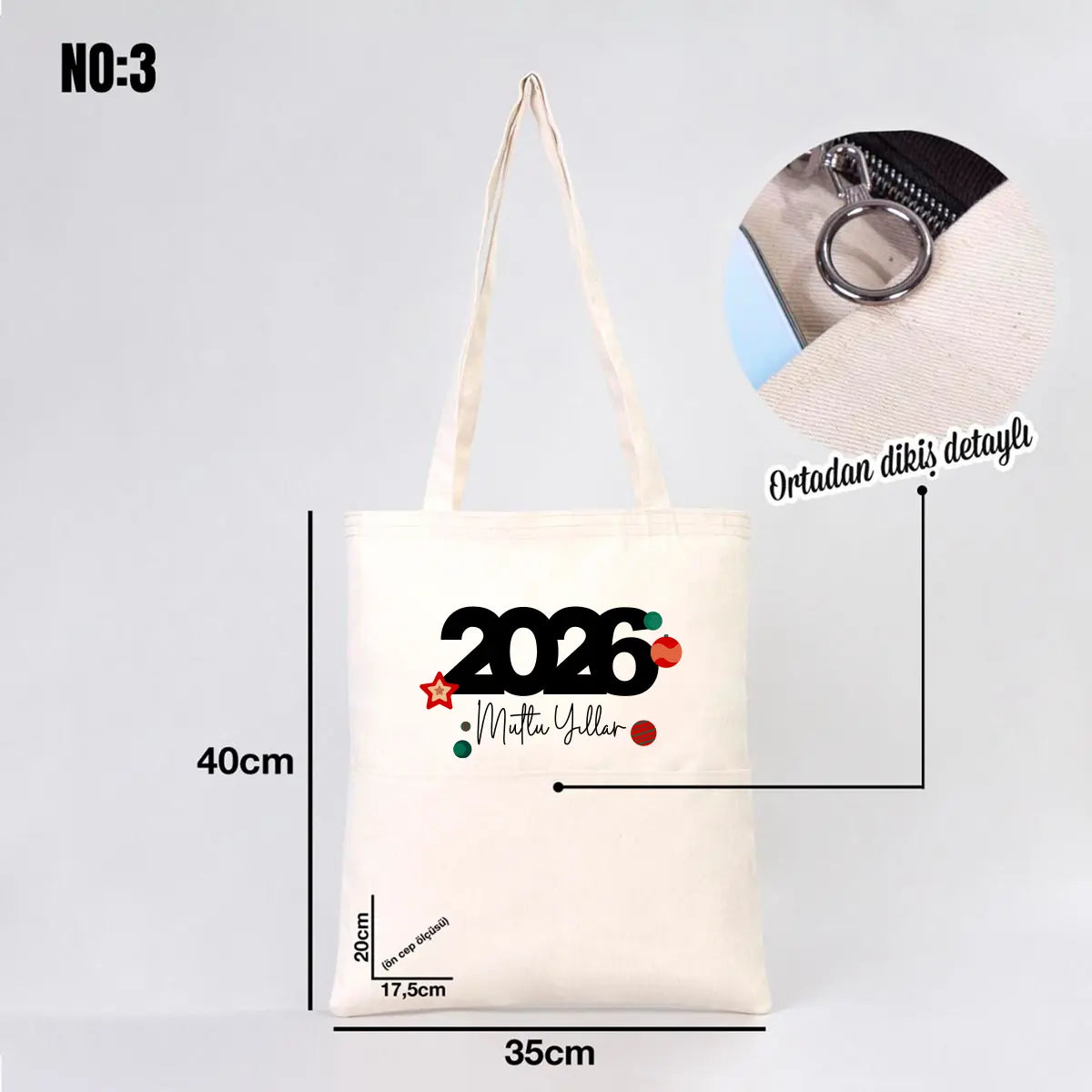 Yılbaşı Baskılı Gabardin Bez Çanta - Cepli (Özelleştirilebilir)