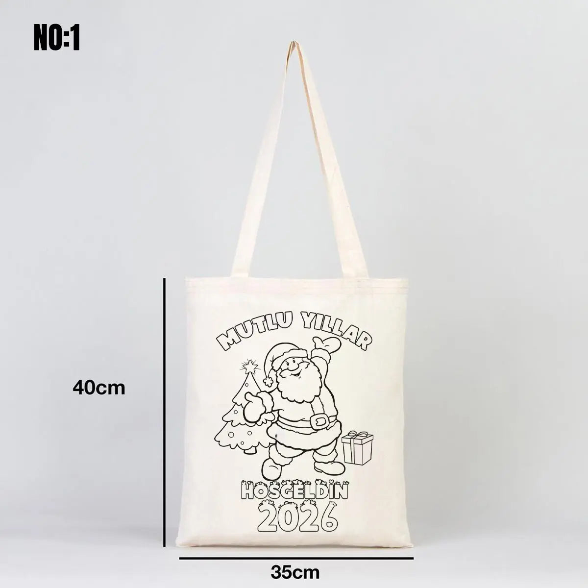 • Mutlu yıllar çizimi baskılı boyamaya uygun bez çanta