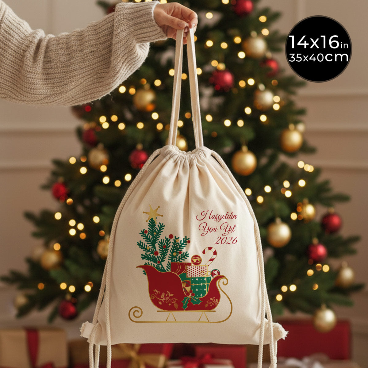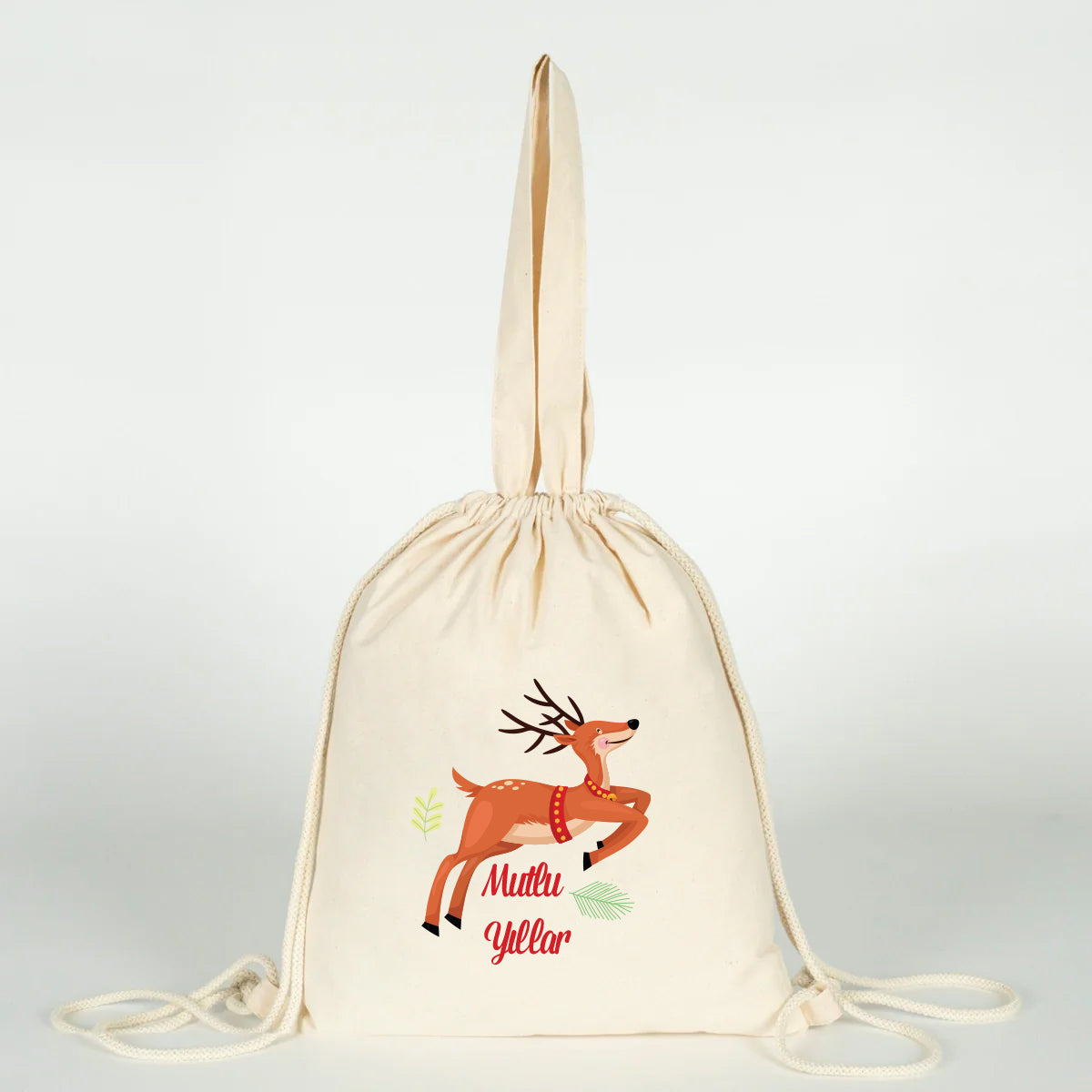 Yılbaşı Hediyesi: Çok Yönlü Büzgülü Bez Çanta 35x40cm – Elde, Omuzda, Sırtta Kullanım