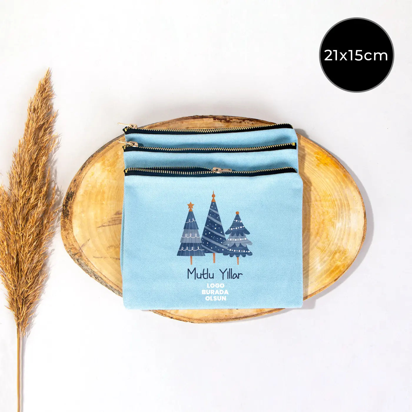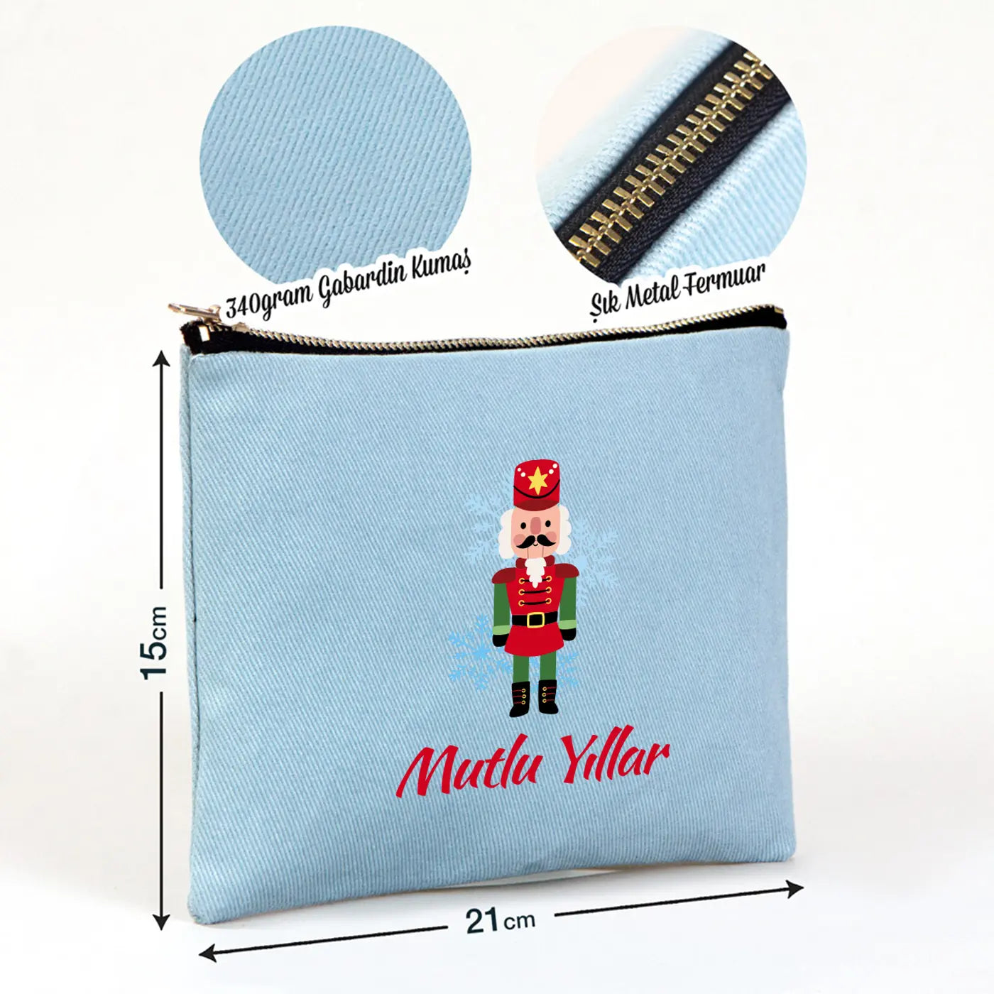 Yılbaşı Star Clutch 21x15 Açık Mavi -Metal Fermuar (Özelleştirilebilir)