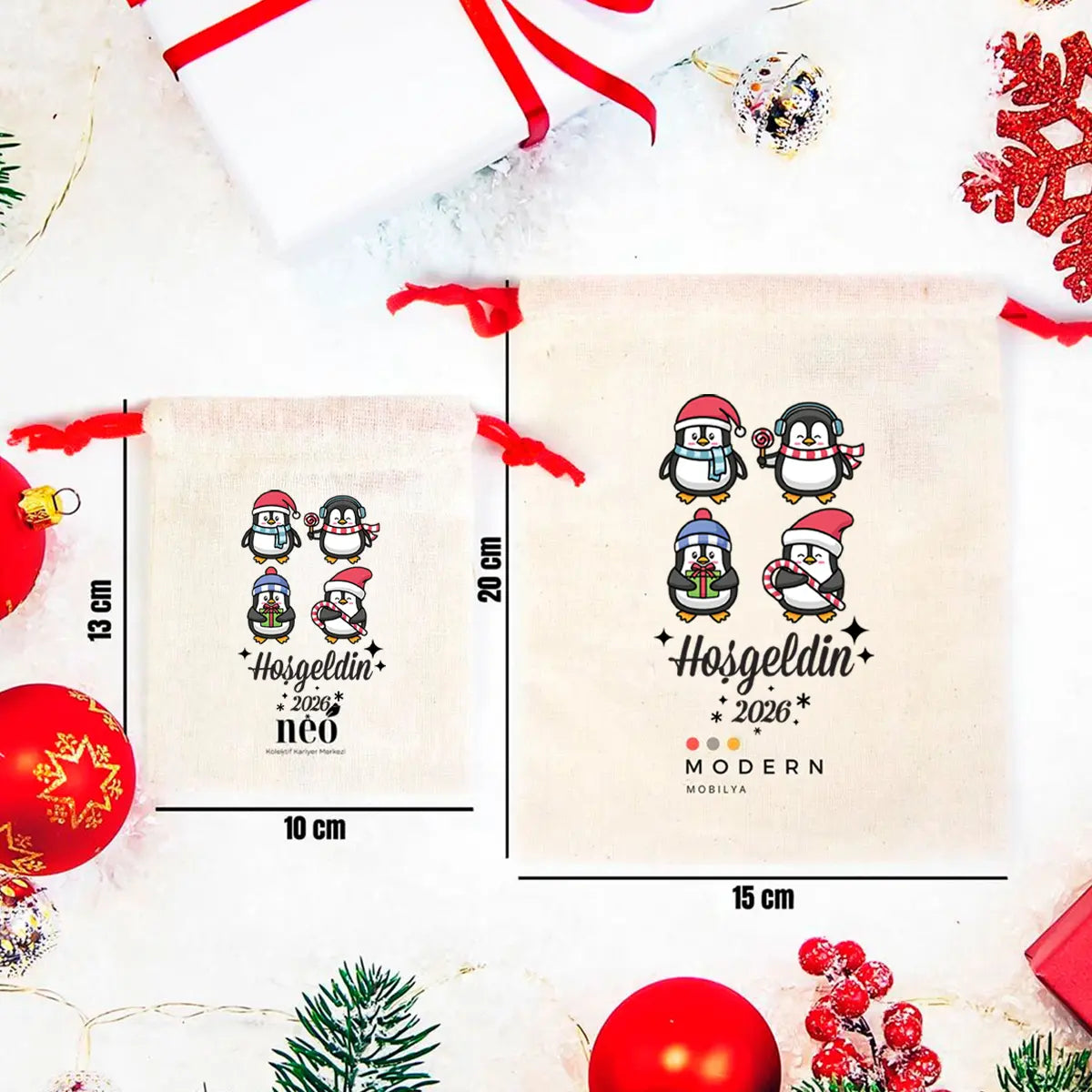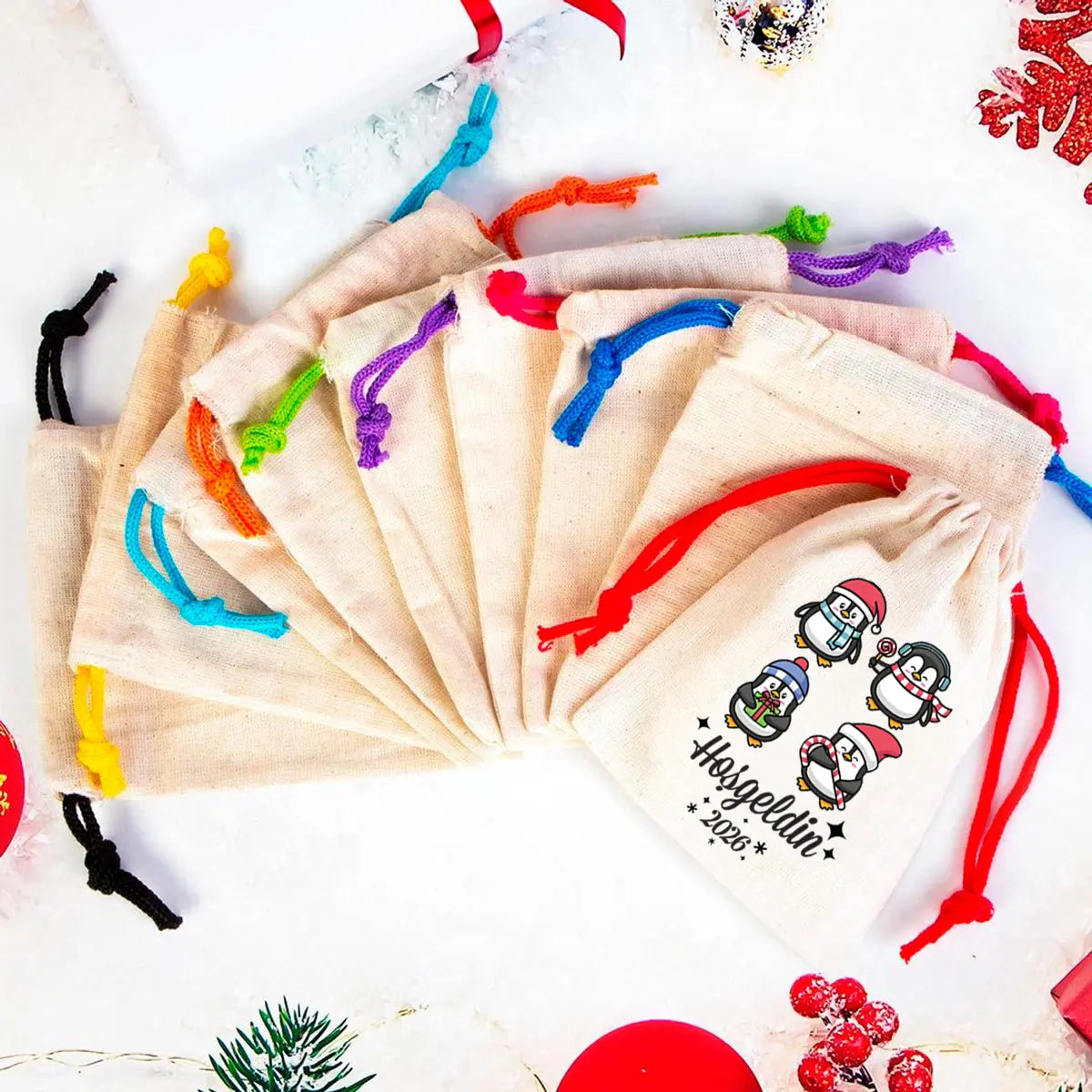 Hoşgeldin 2025 Baskılı Bez Kese - Renkli İp (Özelleştirilebilir)