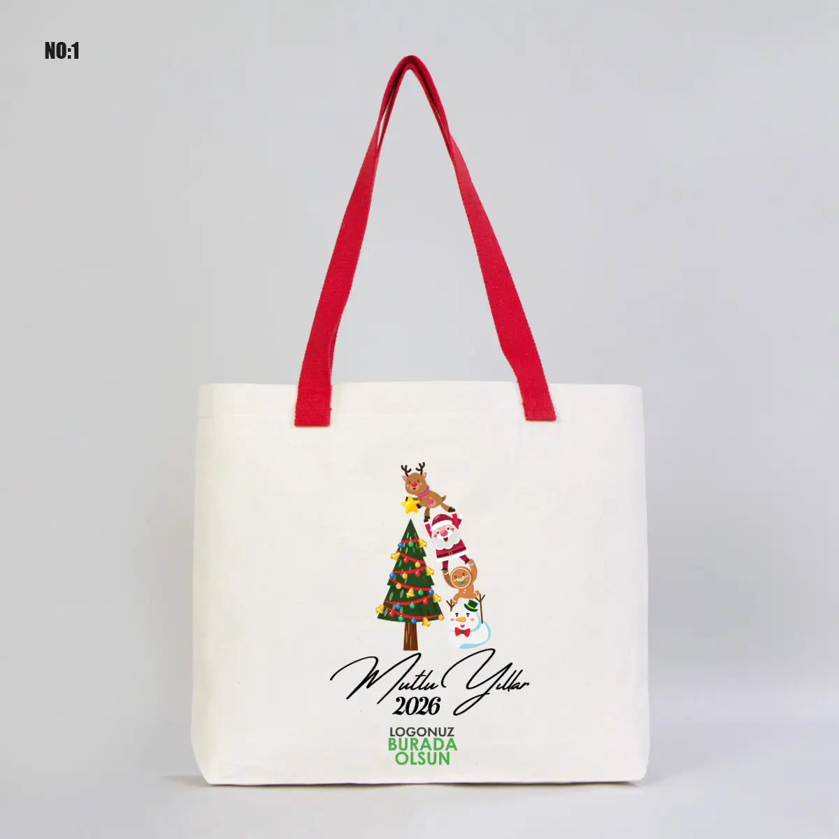 Yılbaşı Modern Kanvas Çanta - Dıştan Renkli Örgü Kulp 45x35x8 cm (Özelleştirilebilir)