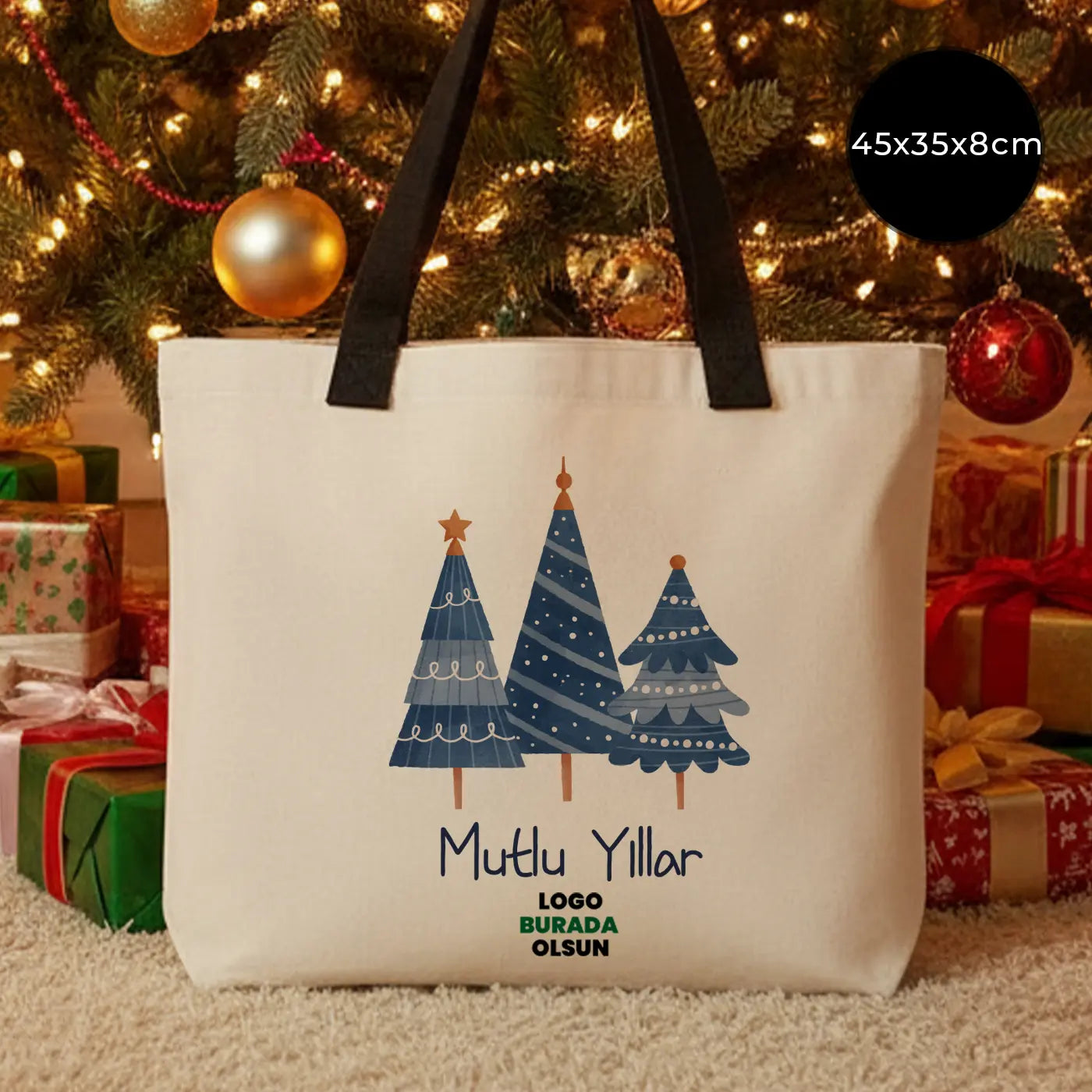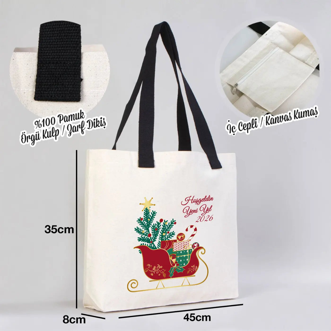 Yılbaşı Modern Kanvas Çanta - Dıştan Siyah Örgü Kulp 45x35x8 cm (Özelleştirilebilir)