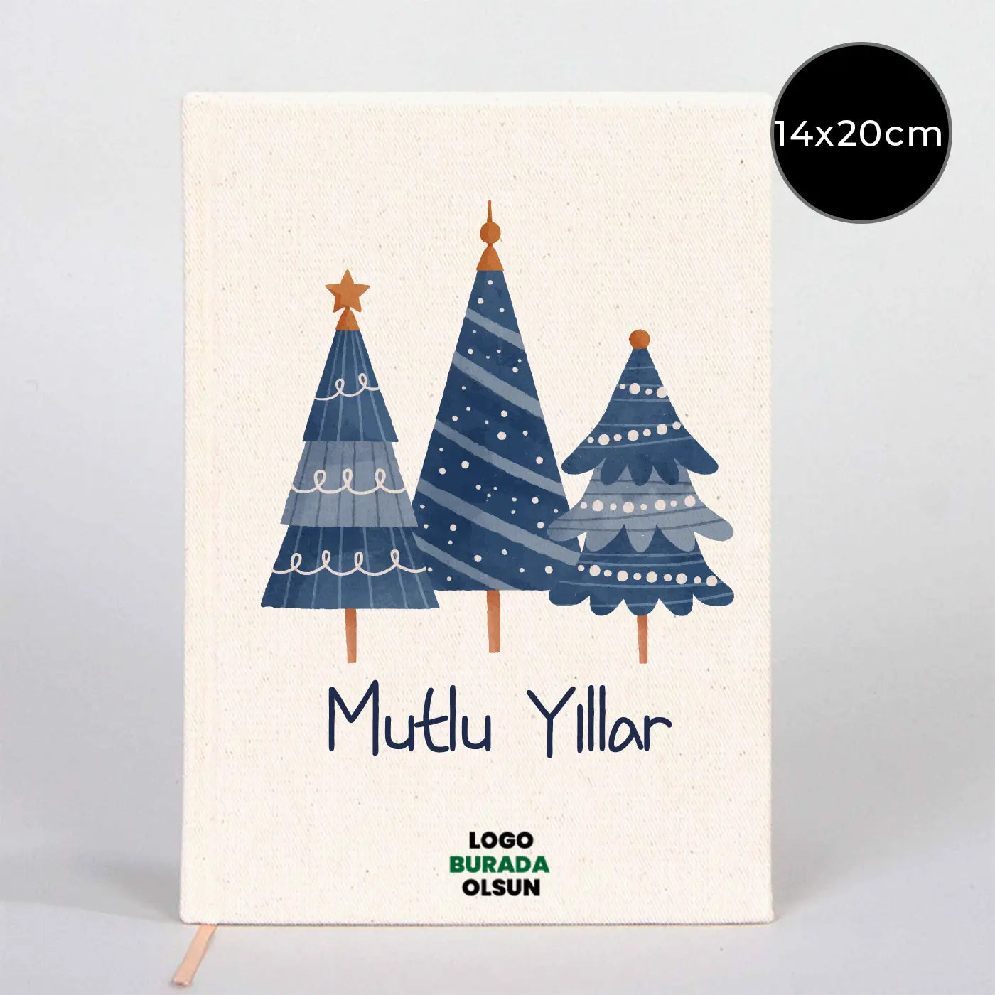 Yılbaşı Özel Desenli Kanvas Defter 14x20 cm (Özelleştirilebilir)
