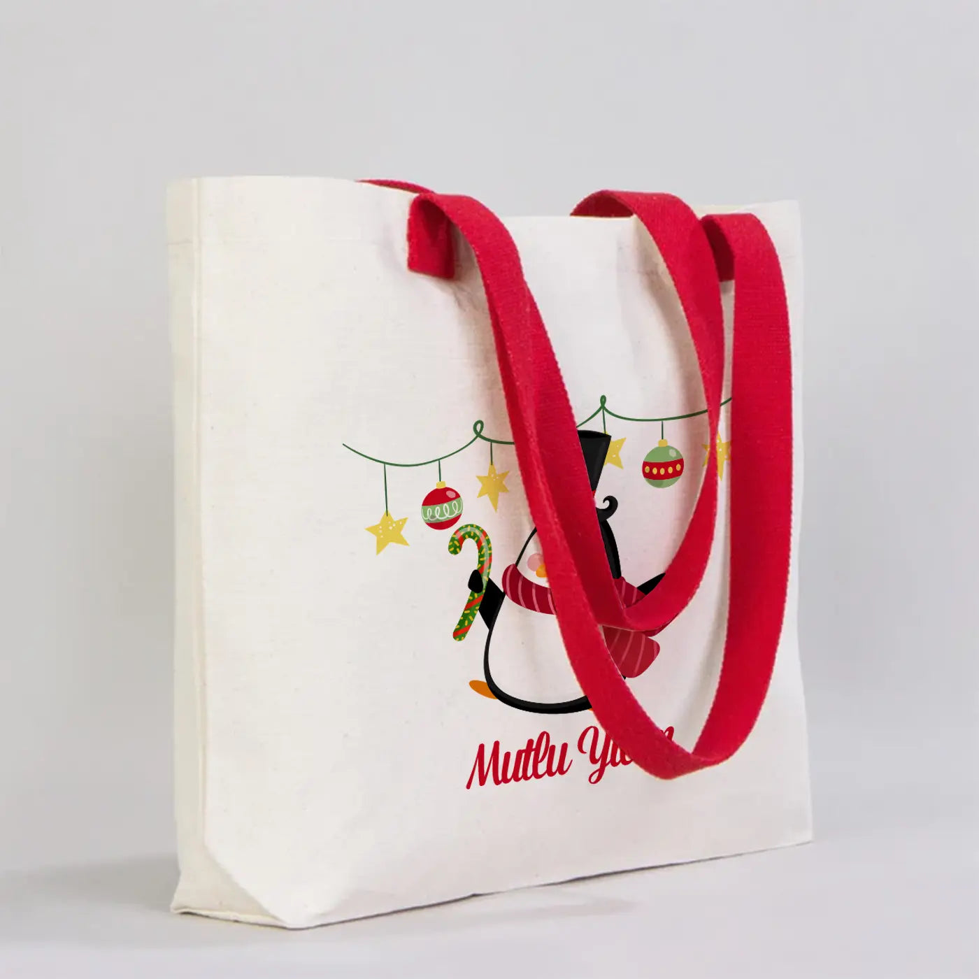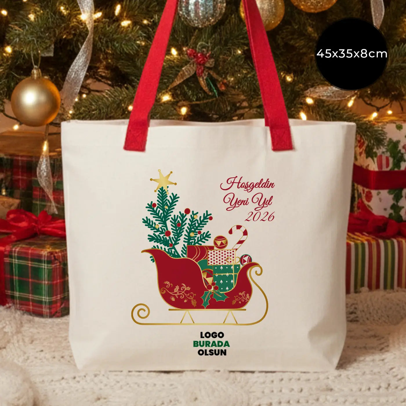 Yılbaşı Özel Modern Kanvas Çanta - Dıştan Renkli Örgü Kulp 45x35x8 cm (Özelleştirilebilir)