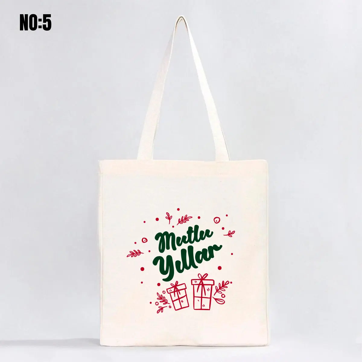 Yılbaşı Tam Körüklü Kanvas Çanta - 35x40x10 cm (Özelleştirilebilir)
