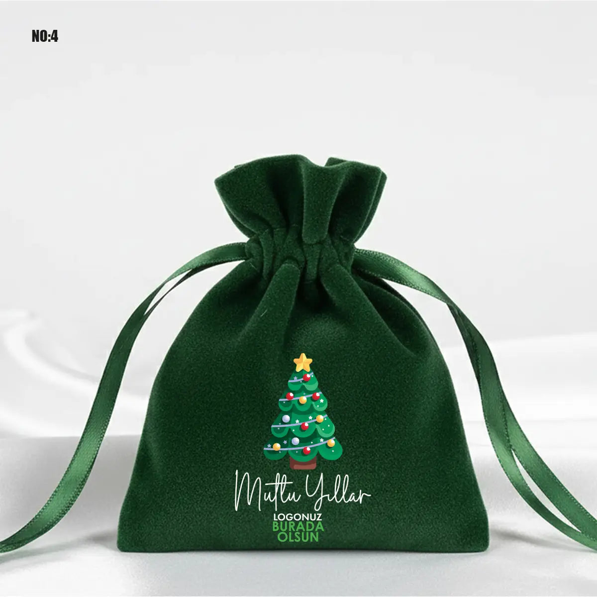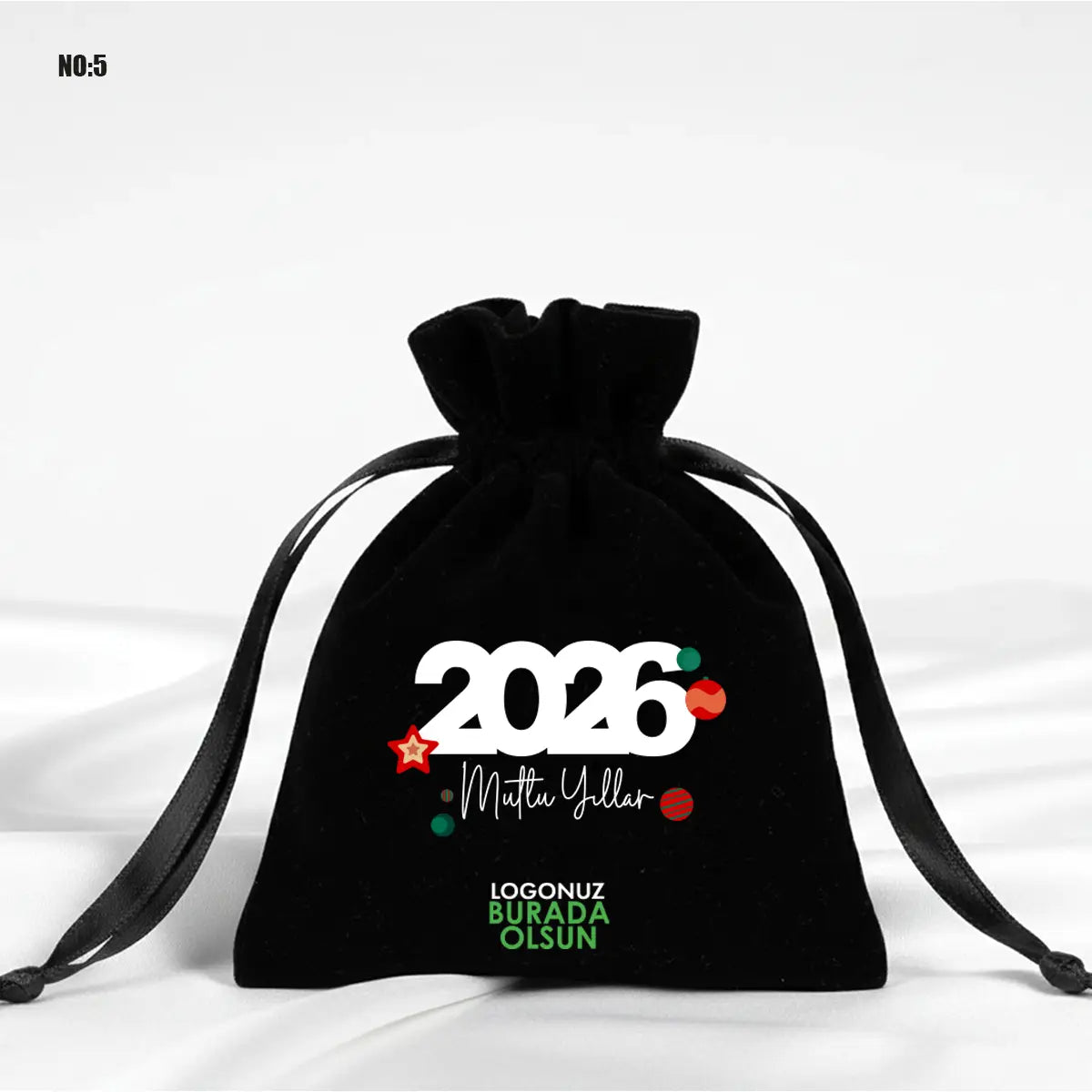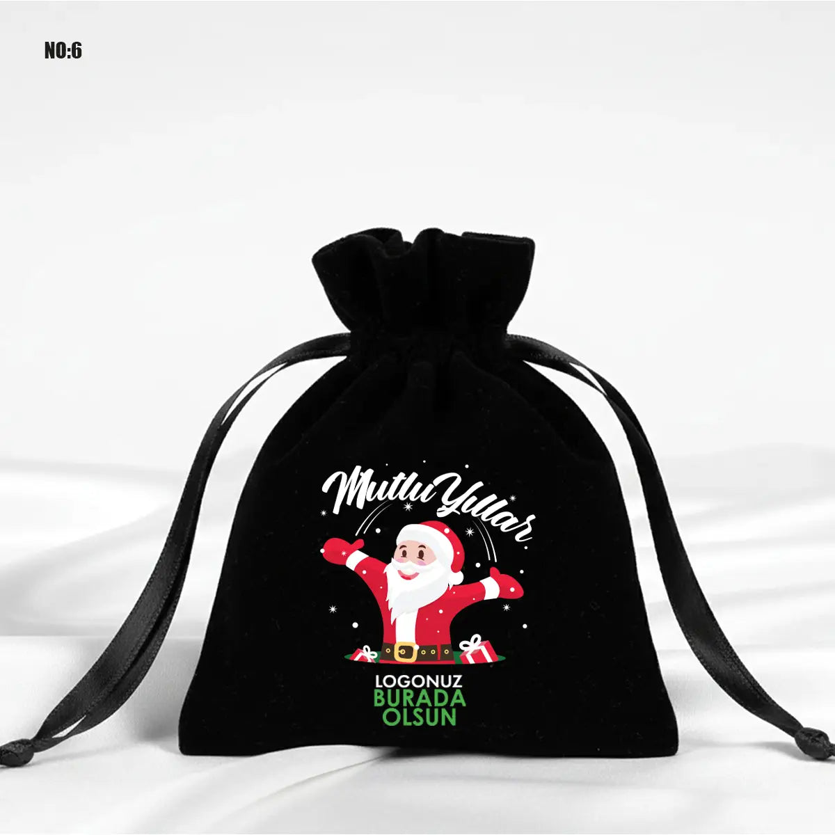 Yılbaşı Temalı Kadife Gül Kese Hediyelikleri 10x13 cm