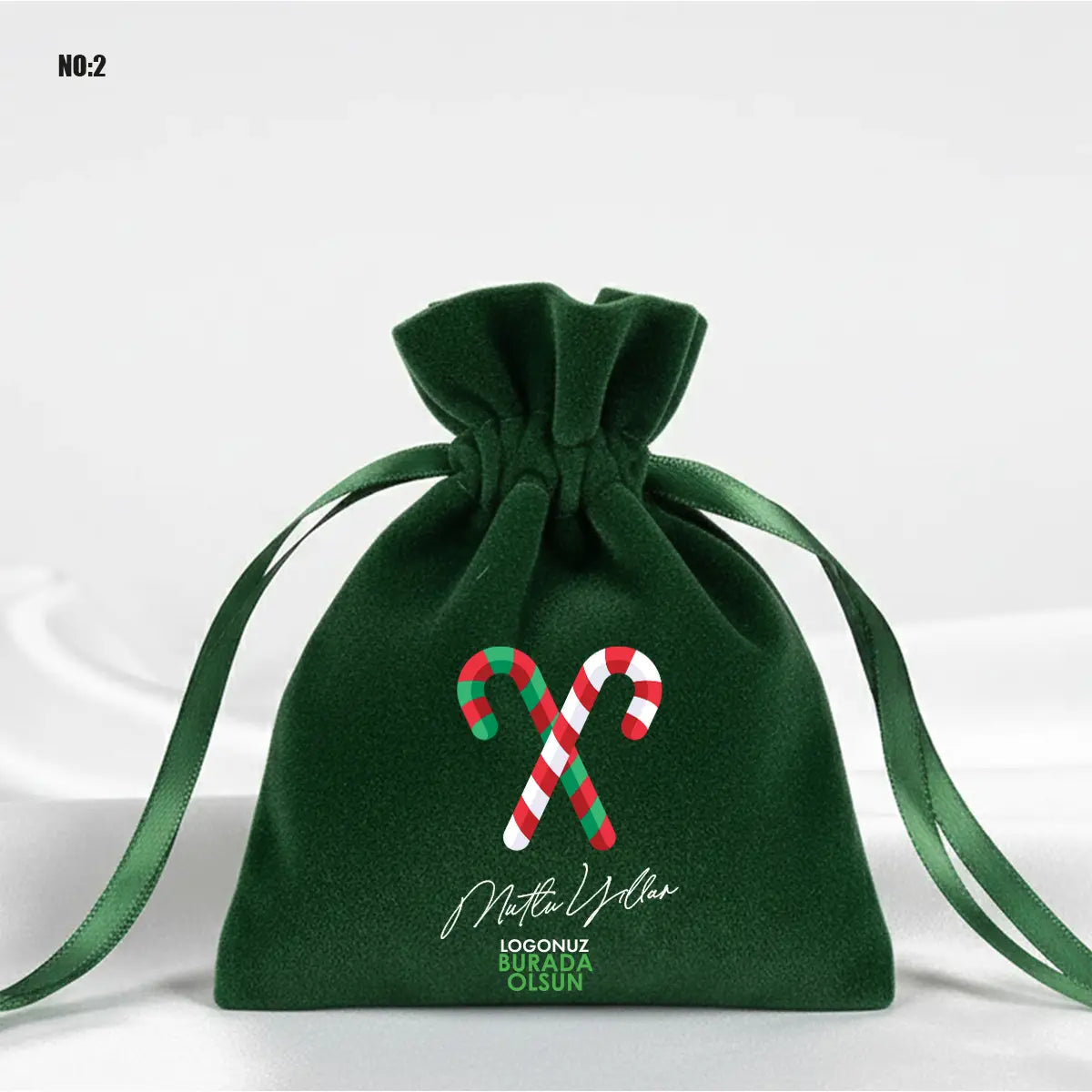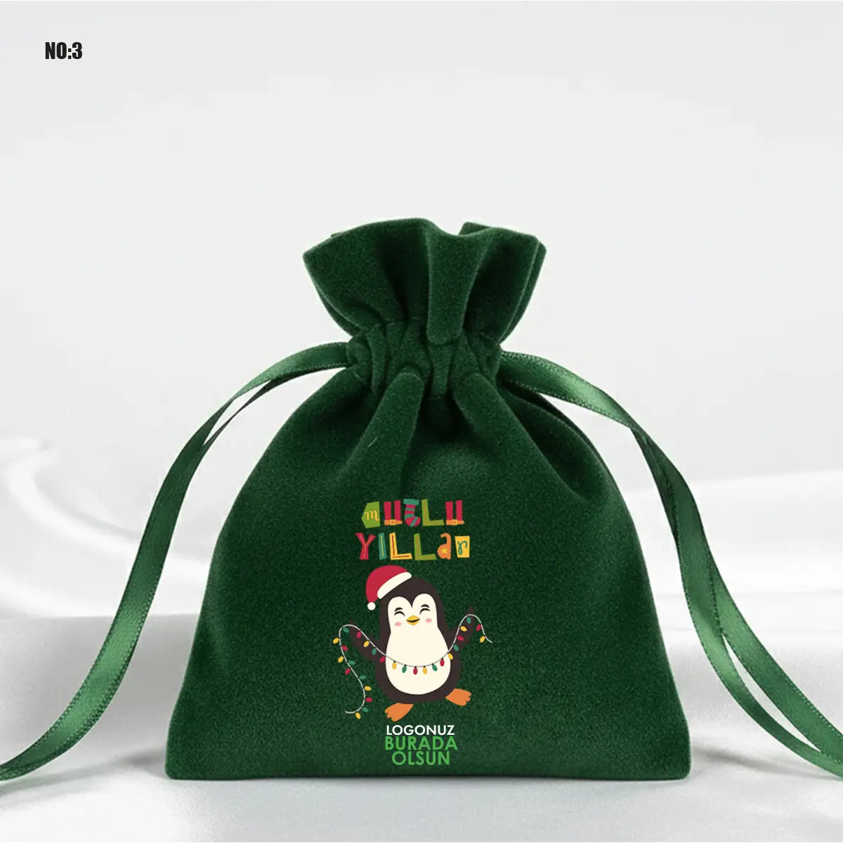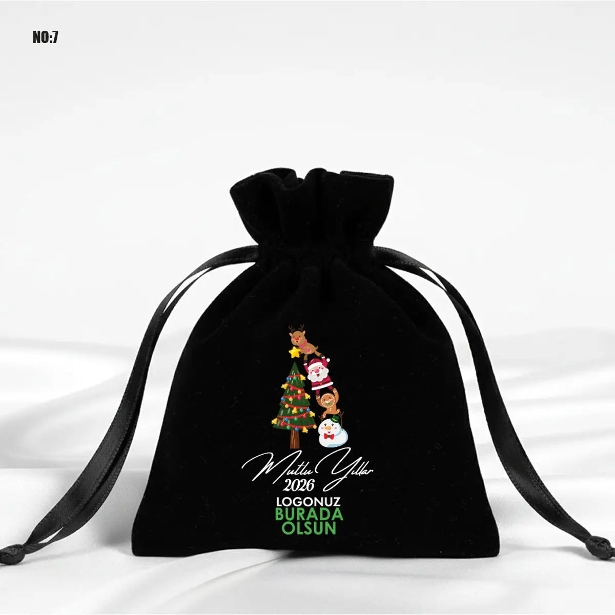 Yılbaşı Temalı Kadife Gül Kese Hediyelikleri 10x13 cm