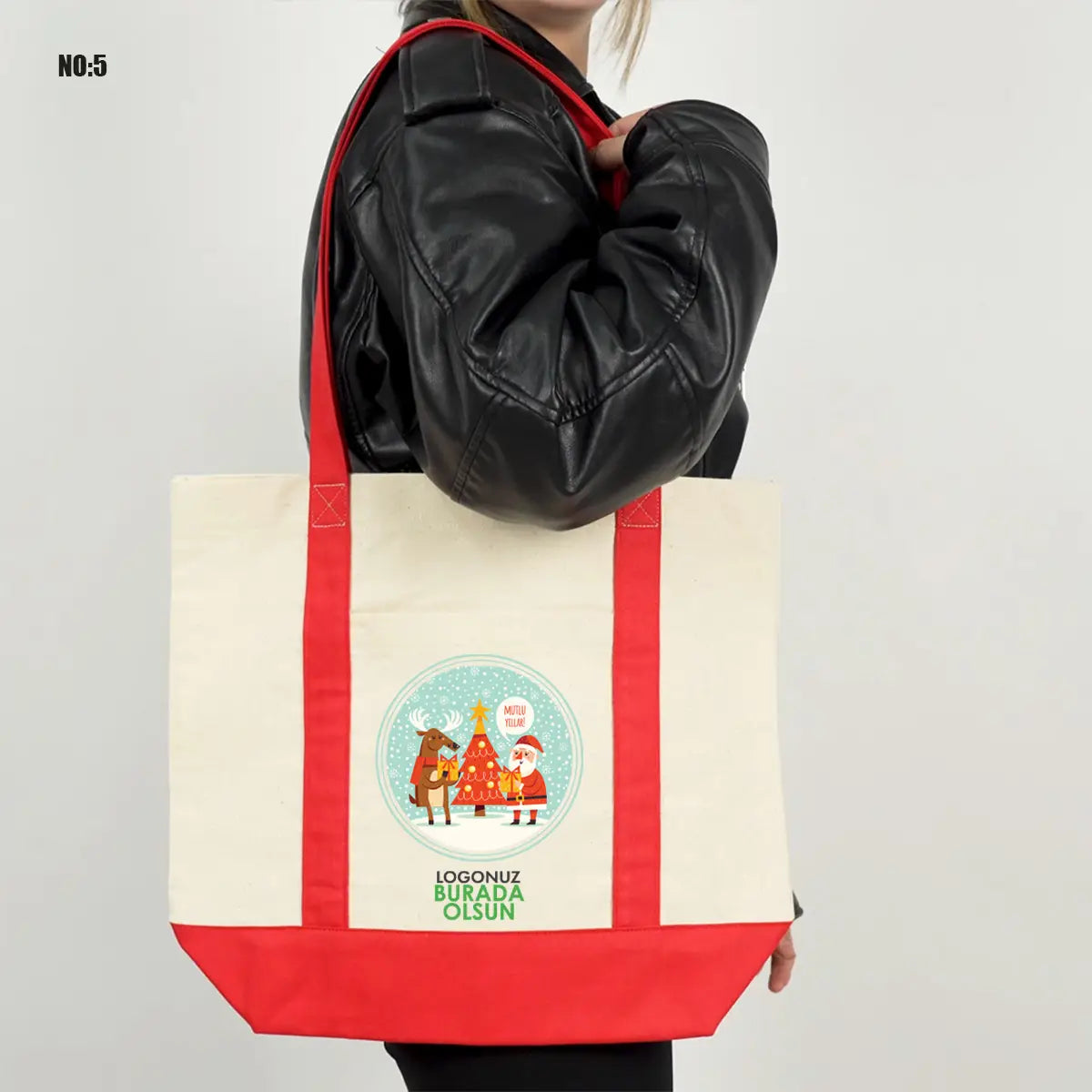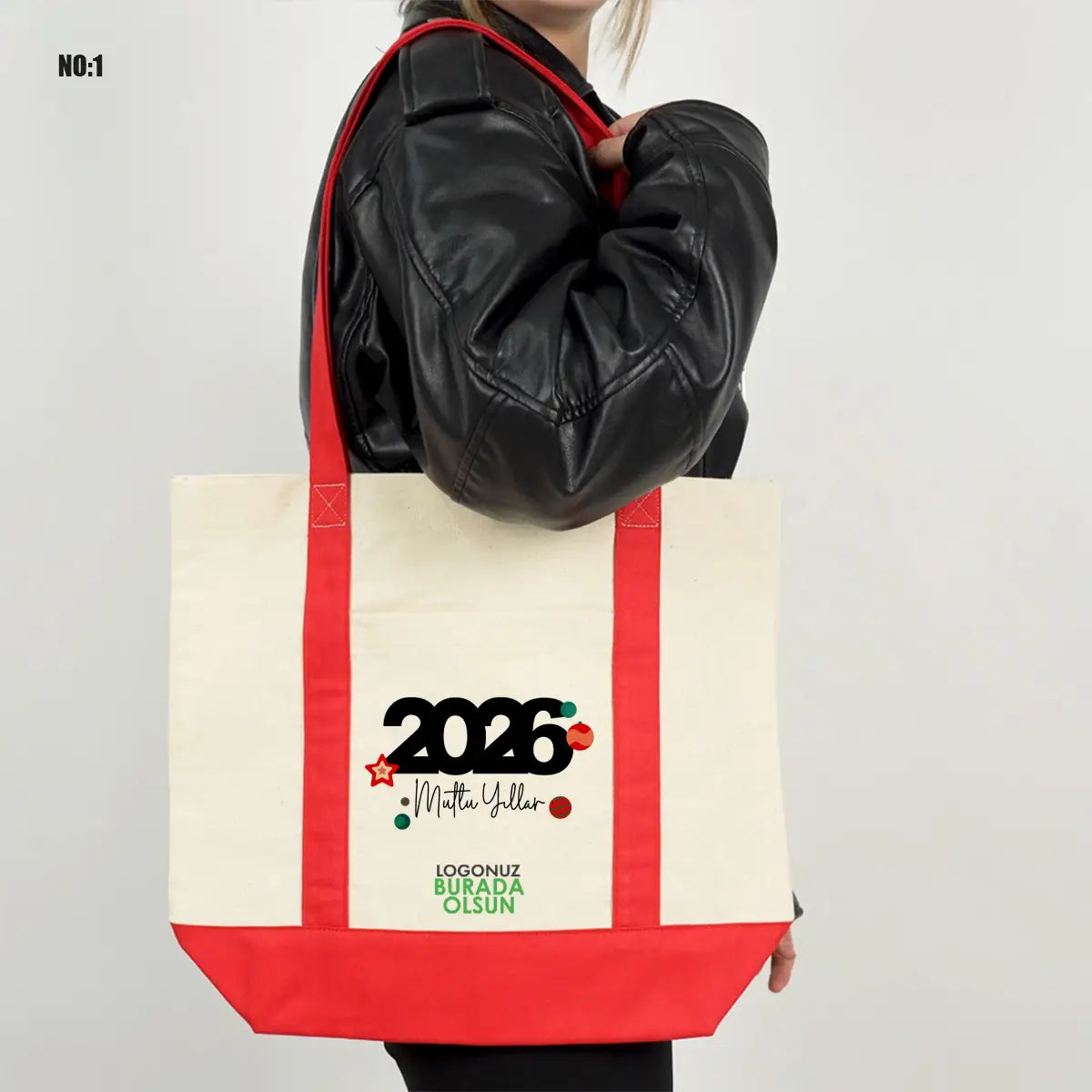 Yılbaşı Trend Kanvas Çanta 40x35x12cm - Renkli Kulp (Özelleştirilebilir)